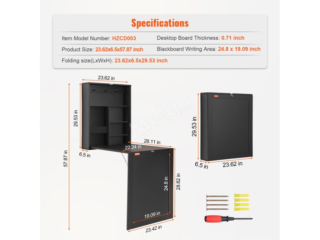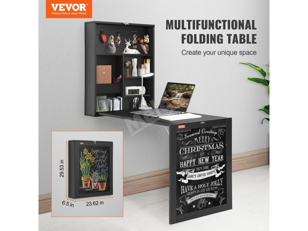 Tento vysokokvalitný nástenný skladací stôl s rozmermi 23,62 × 6,5 × 29,53 palca slúži viac než len ako kancelársky stôl. Skvele sa hodí aj ako pracovný, jedálenský alebo výstavný stôl. Vďaka prvotriednej pracovnej doske je robustný a odolný a hladký povrch zaisťuje jednoduché čistenie. Jeho skladacia konštrukcia výrazne šetrí miesto.