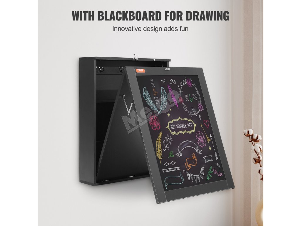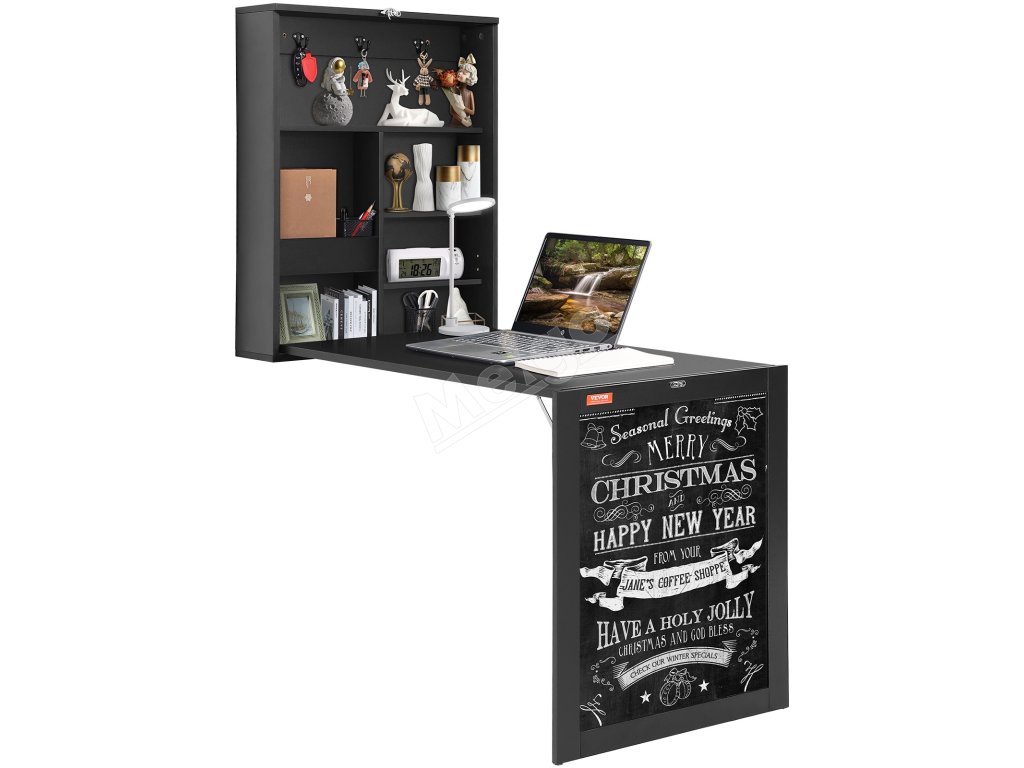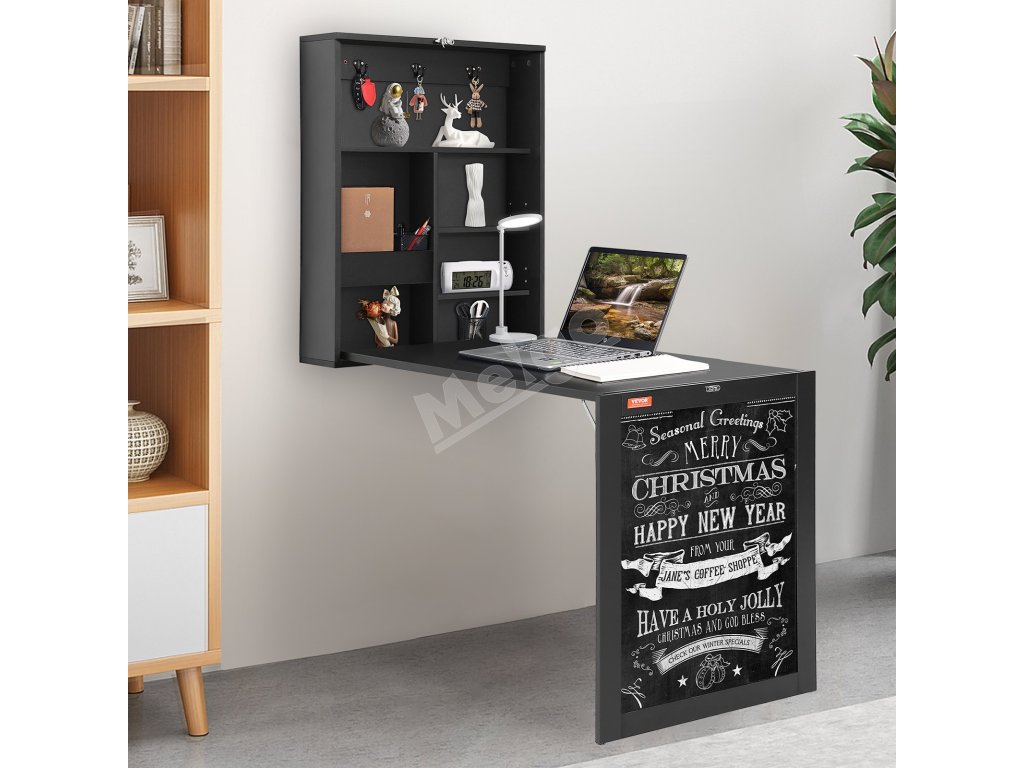 Nástenný sklápací stôl s tabuľou a úložným priestorom pre pc a knihy