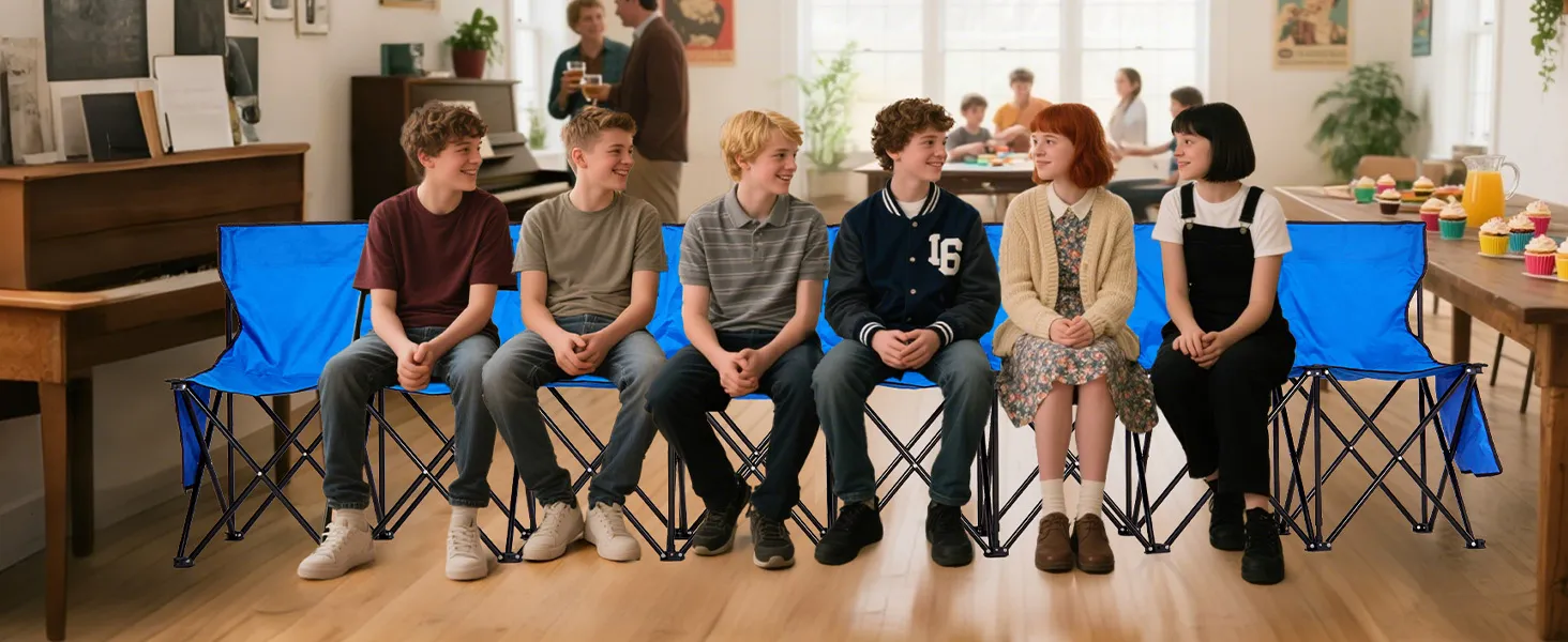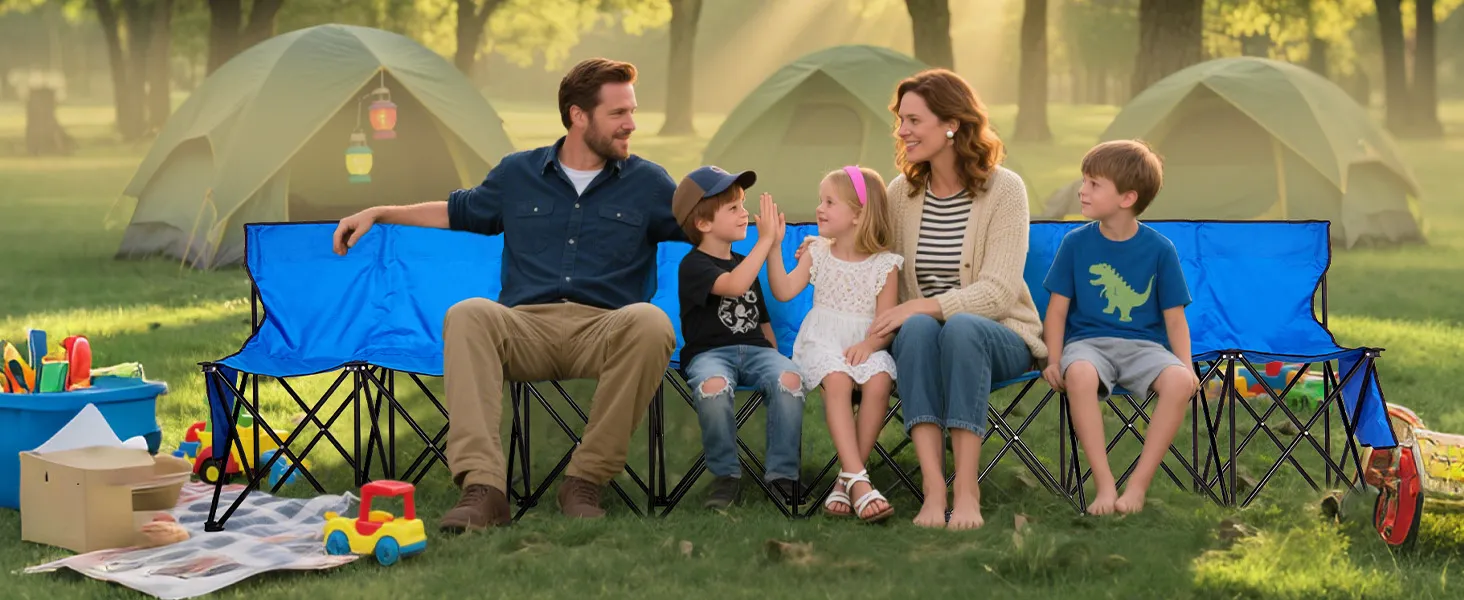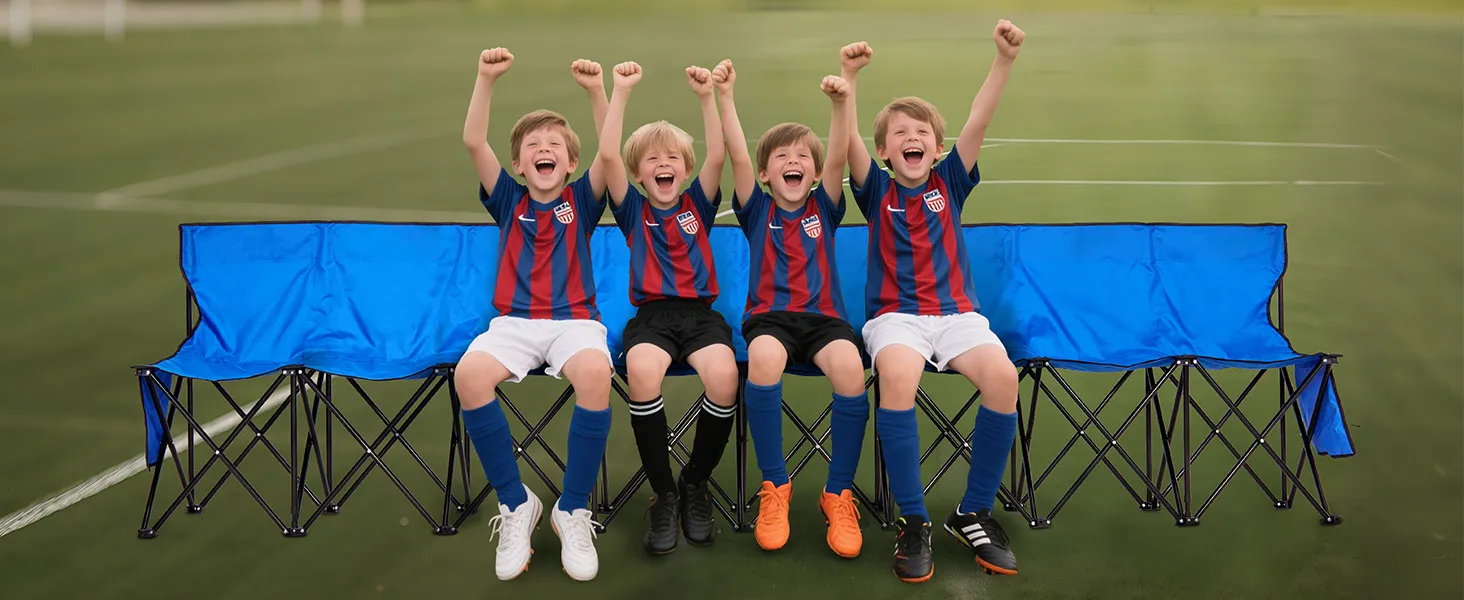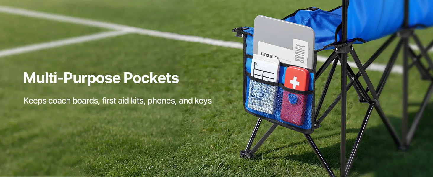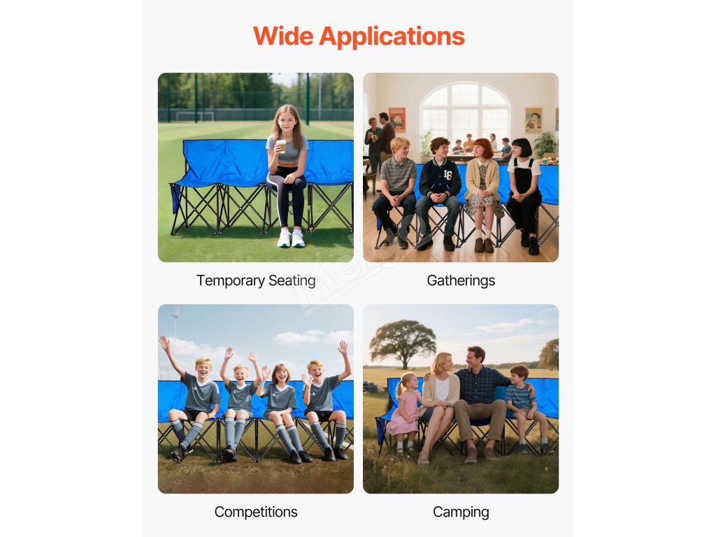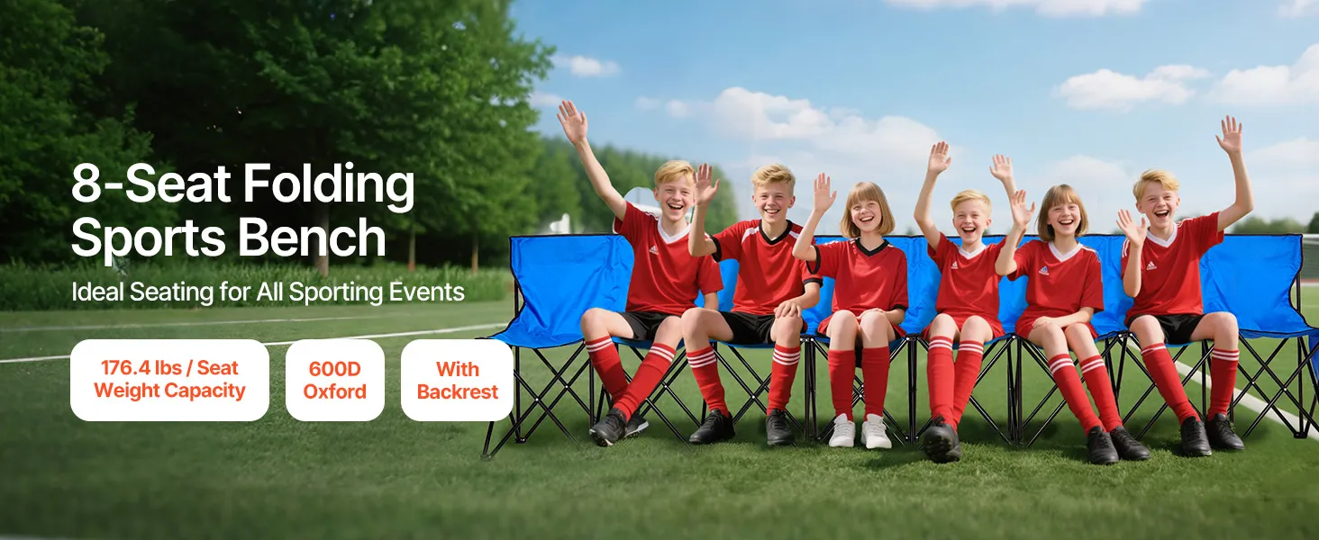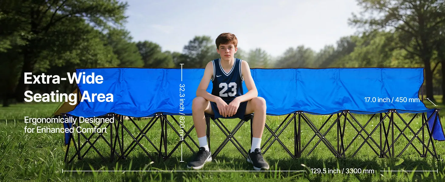 Prenosná skladacia 8-miestna lavička s operadlom a vreckami pre šport