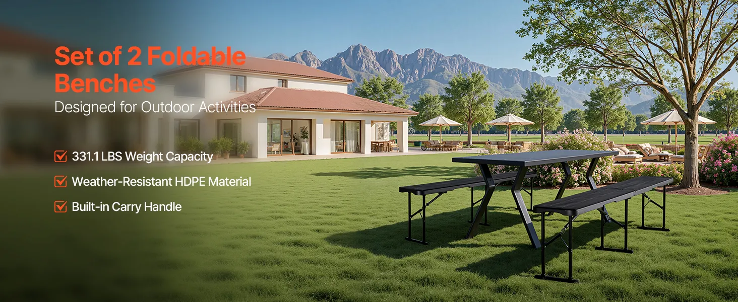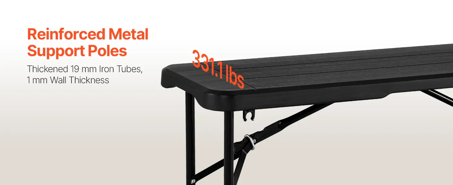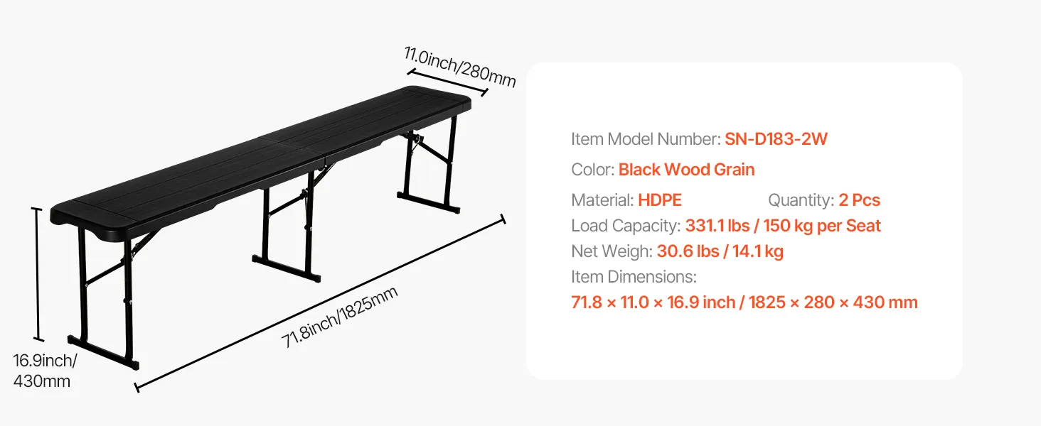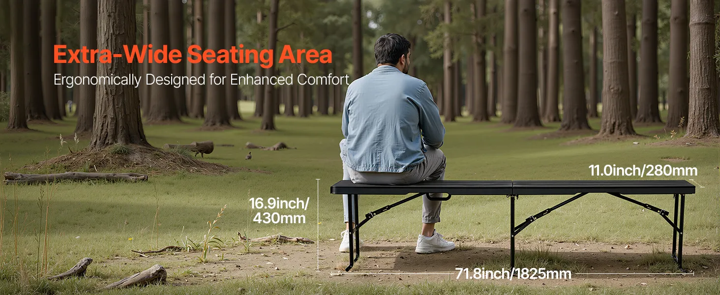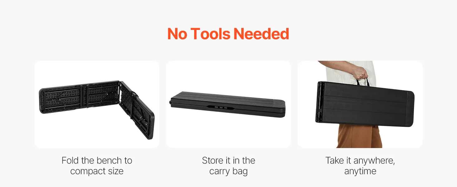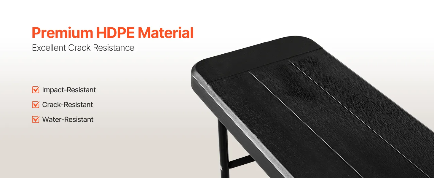 Táto prenosná lavička je vyrobená z prvotriedneho materiálu HDPE, je robustná a odolná. Vďaka svojej skladacej konštrukcii je ideálna na športové podujatia, večierky, kempovanie v prírode alebo akúkoľvek dočasnú činnosť.