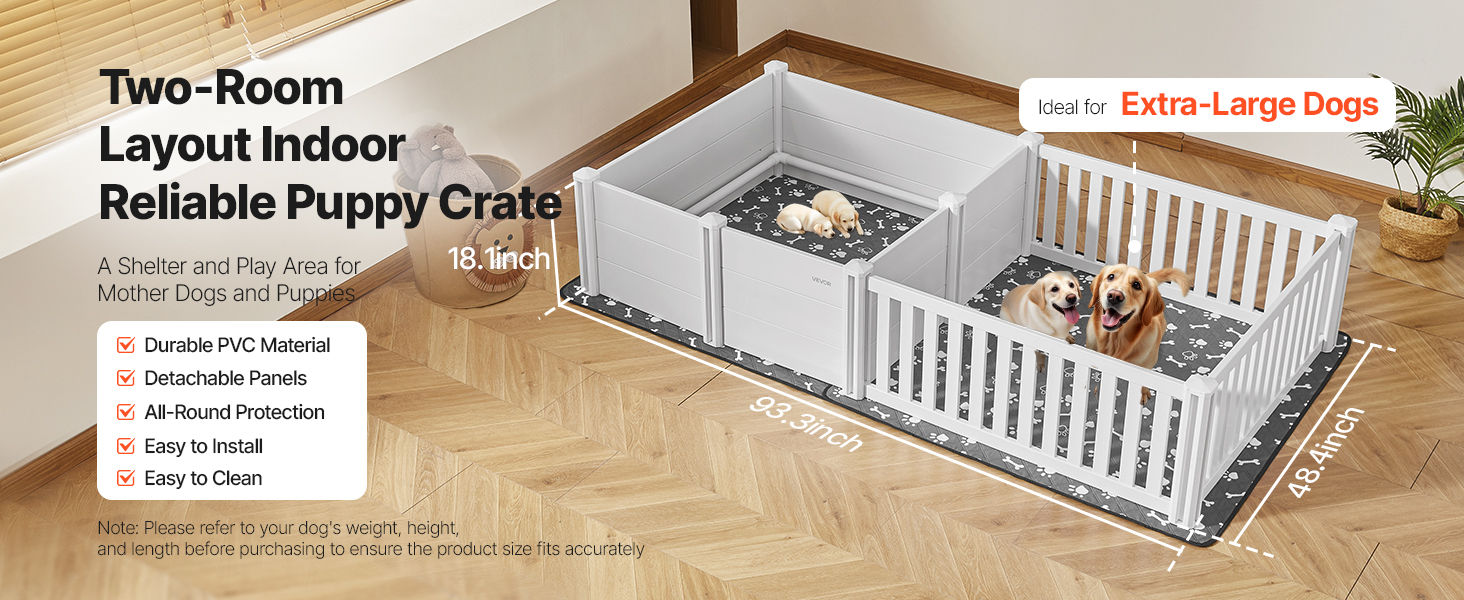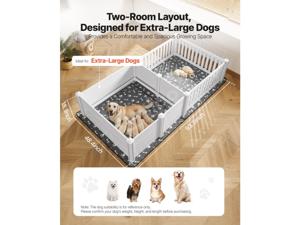 Box na odchov šteniat, 93.3×48.4×18.1 inch, plast pvc, 2-izbový
