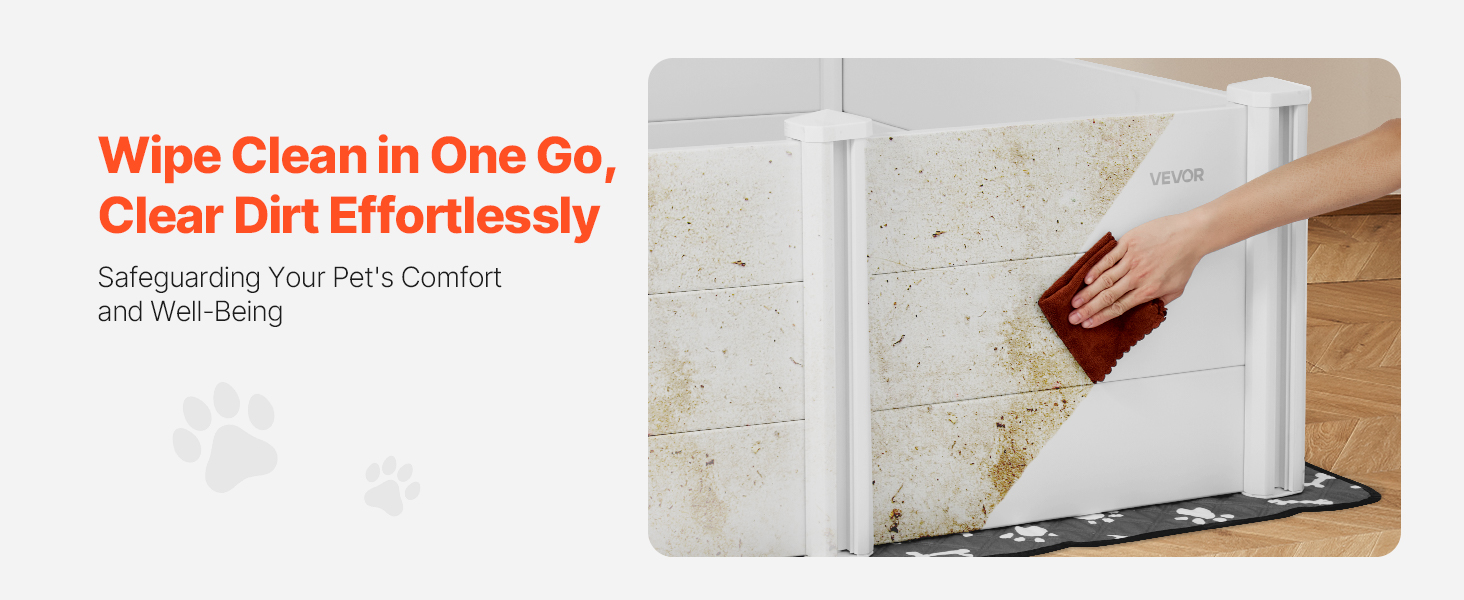 Ploché povrchy panelov sa ľahko čistia len vlhkou handričkou. Tento rýchly a účinný spôsob čistenia pomáha znižovať riziká ochorení a udržiava priestor vášho domáceho maznáčika svieži a čistý.