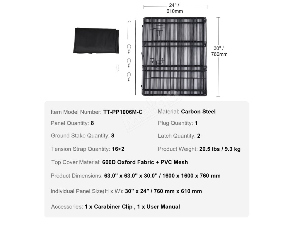 Ohrádka pre psov s 8 panelmi sa dodáva vopred zmontovaná, takže je ľahká a ľahko prenosná - ideálna na to, aby ste mohli vziať svojho domáceho miláčika na výlety do prírody alebo kempovanie. Pri používaní vonku ho možno postaviť bez podložky alebo vrchného krytu, čo umožňuje všestranné tvary podľa vašich potrieb.