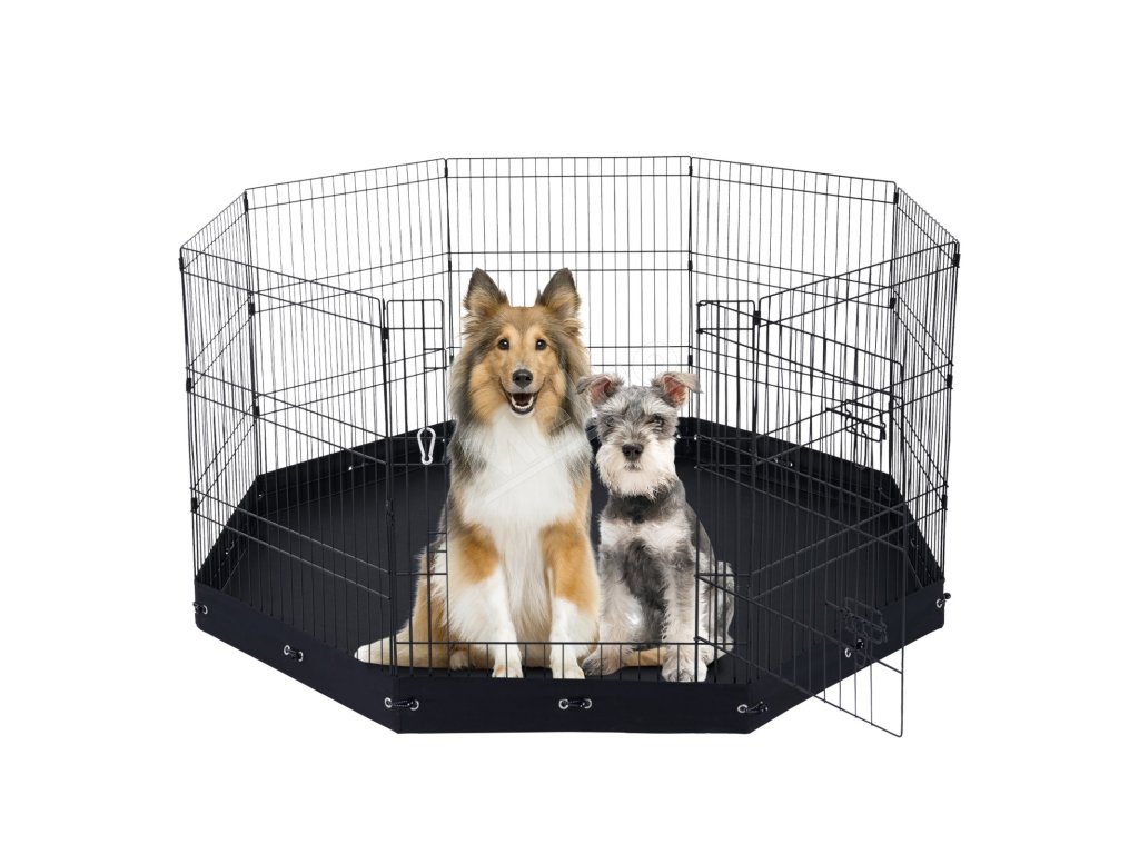 Ohrádka pre psa dosahuje maximálny priestor po zostavení do osemuholníka, vďaka čomu je vhodná na použitie v interiéri aj exteriéri. Je ideálny na výcvik domácich miláčikov a pomáha im naučiť sa nové zručnosti.