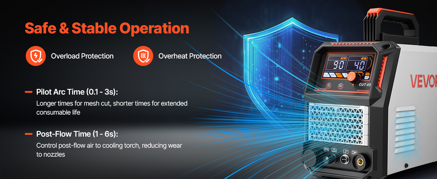 Táto plazmová rezačka IGBT kombinuje silný výkon, inteligentné ovládanie a zvýšenú bezpečnosť na zabezpečenie efektívneho, presného a bezpečného rezania - ideálna na domáce opravy aj do dielne.