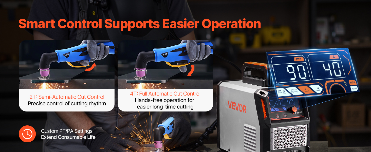Táto plazmová rezačka poskytuje výkon 65 A, ktorý umožňuje jednoduché rezanie rôznych kovov. Vďaka bezdotykovému pilotnému oblúku, inteligentnému ovládaniu, funkcii 2T/4T a prehľadnému digitálnemu displeju zabezpečuje stabilný výstup na plynulé a efektívne rezanie v domácich garážach a opravárenských dielňach.