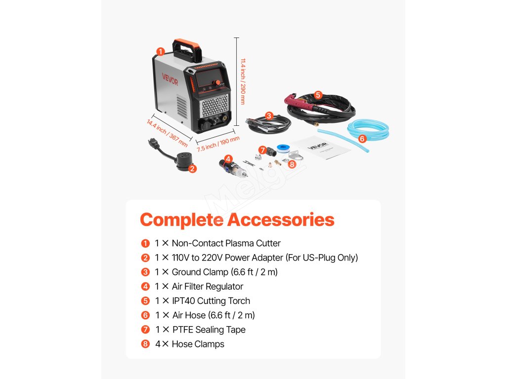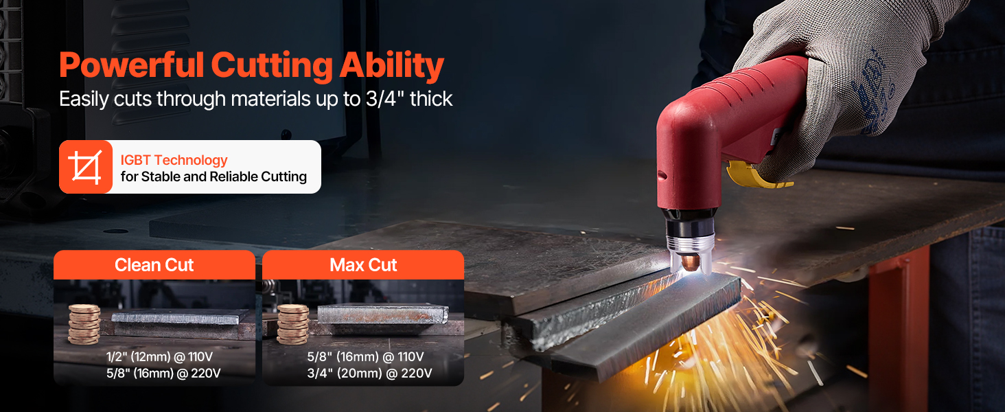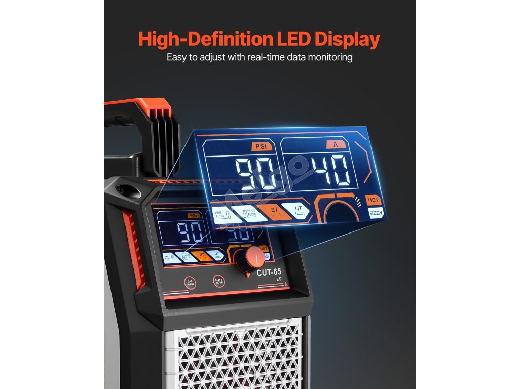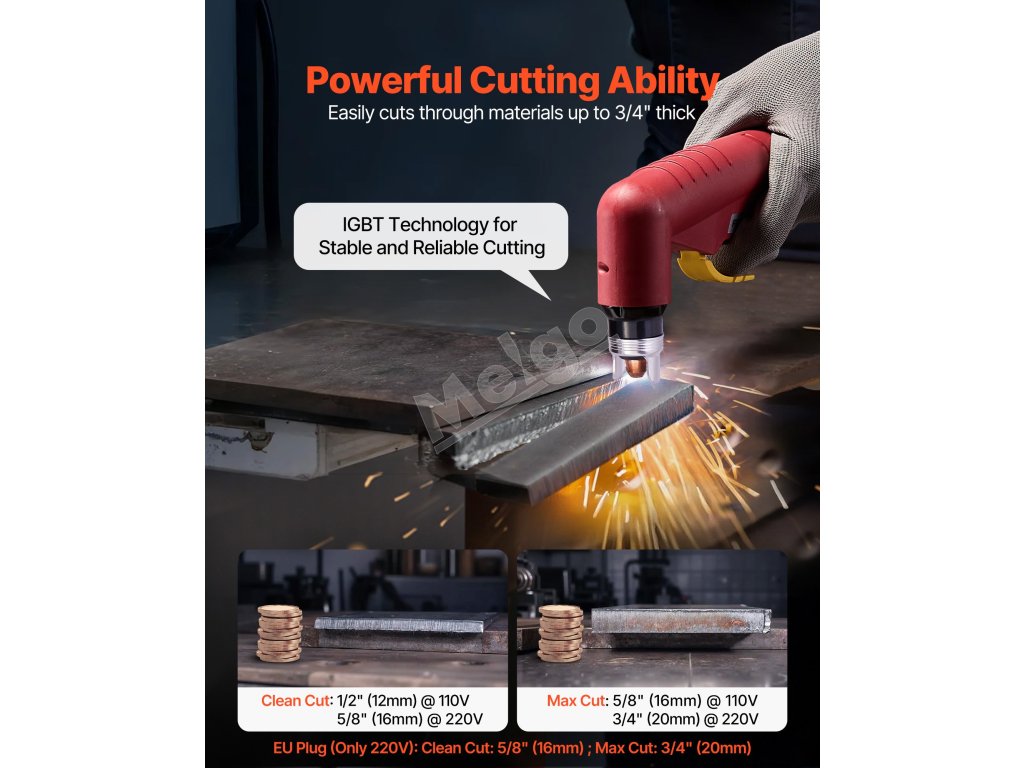 Maximálny výstupný prúd 65 A podporuje čisté rezy až do 16 mm s maximálnou hrúbkou rezu 20 mm. (Poznámka: iba 220 V. Napájací adaptér nie je súčasťou balenia)