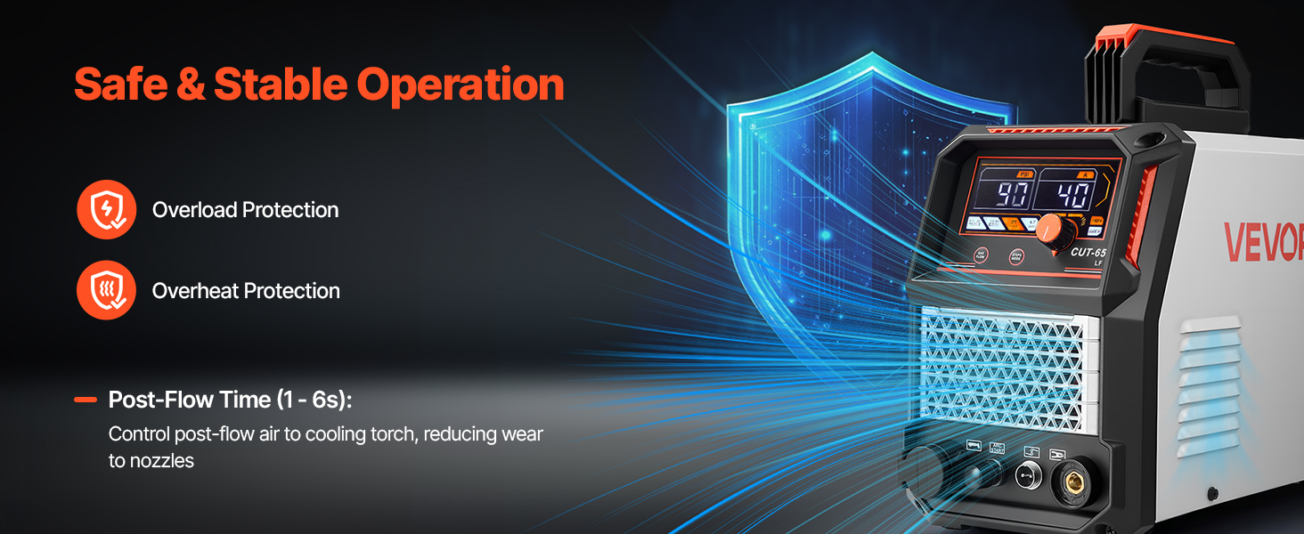 Tento plazmový rezač je vybavený pokročilou technológiou IGBT invertora pre presné ovládanie, ktoré zabezpečuje stabilné a spoľahlivé rezy. Vďaka viacerým ochranným systémom zaručuje komplexnú bezpečnosť pri rezaní!