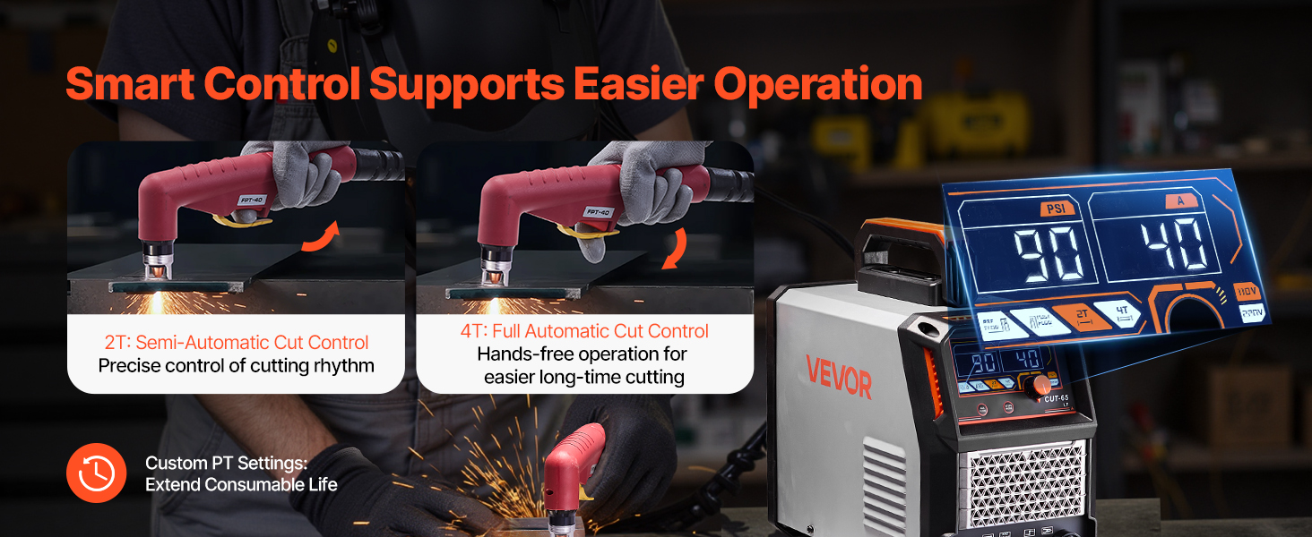 Plazmový rezač 65A pilotná iskra bez kontaktu, 2T/4T, nastaviteľný PT