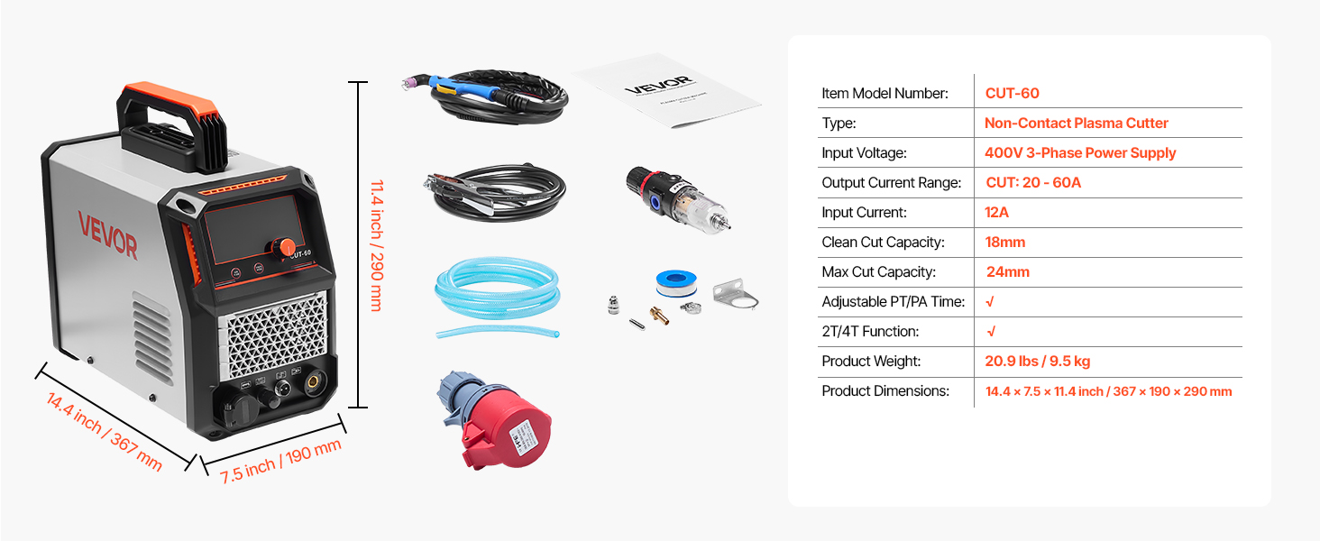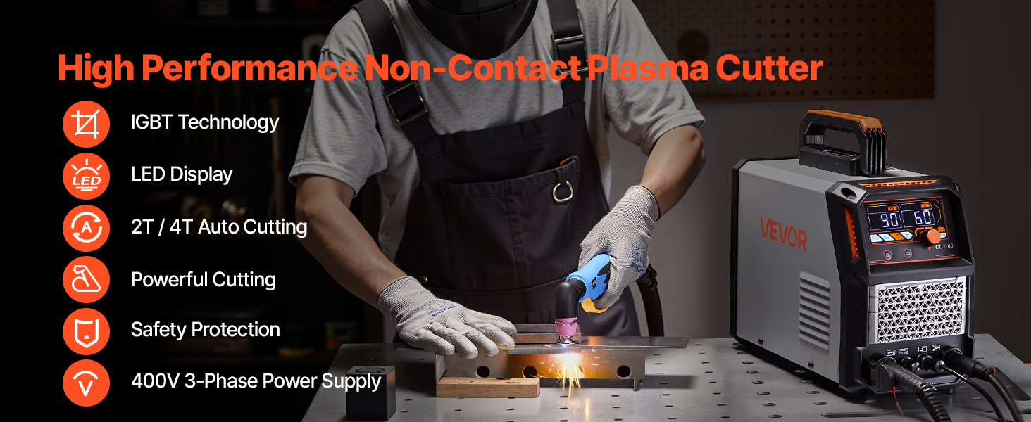 Plazmový rezací invertor 60A, bezdotykový pilotný oblúk, 400V 3-fázový