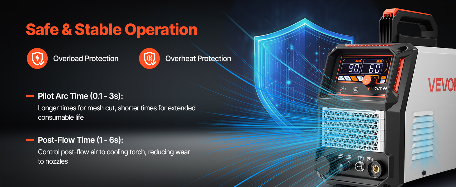 Tento plazmový rezací stroj je vybavený pokročilou technológiou invertora IGBT na presné riadenie, ktorá poskytuje stabilné a spoľahlivé rezy. Vybavený viacerými ochrannými systémami zaisťuje komplexnú bezpečnosť vašich rezacích úloh!