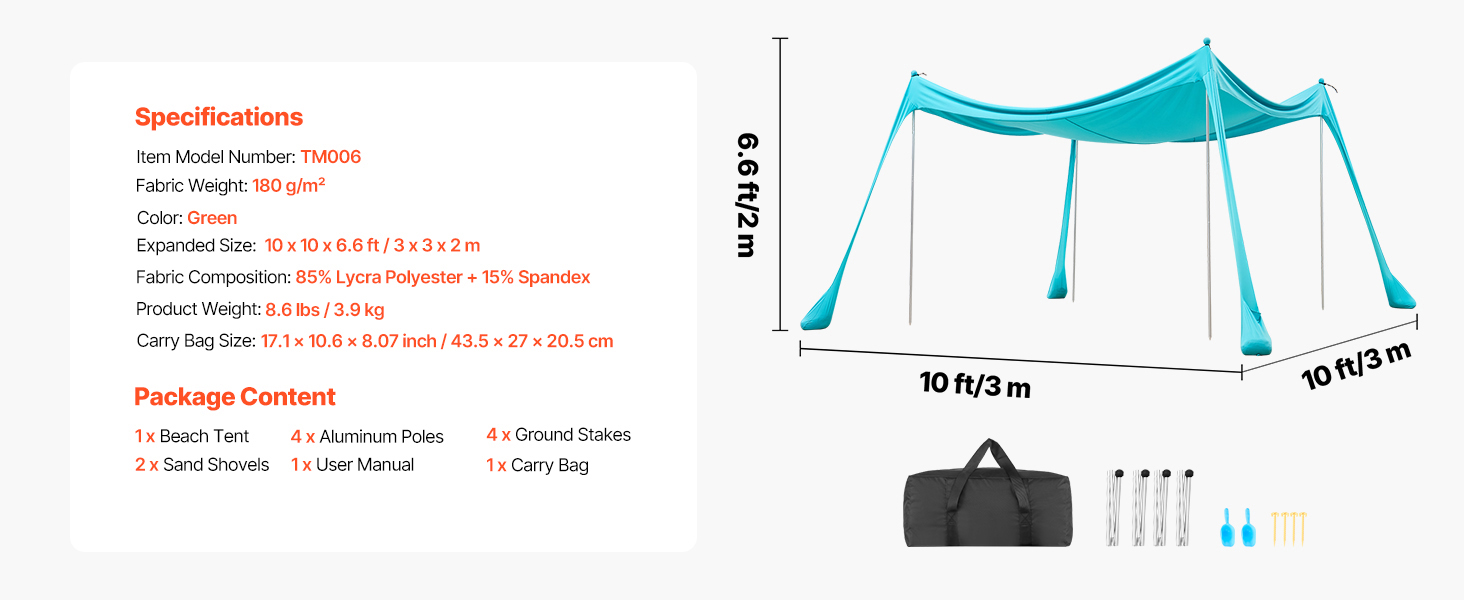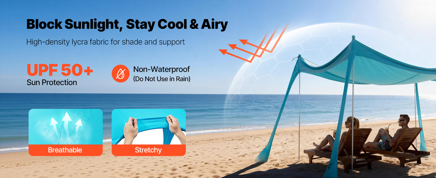 Tento plážový prístrešok je vyrobený z hybridnej lycrové tkaniny a poskytuje ochranu pred slnkom UPF 50+, aby sa zabránilo spáleniu pokožky počas outdoorových aktivít. Hustá väzba a vynikajúca pružnosť zlepšujú odolnosť proti roztrhnutiu a zabezpečujú dlhodobú ochranu pred slnkom a meniacim sa počasím.