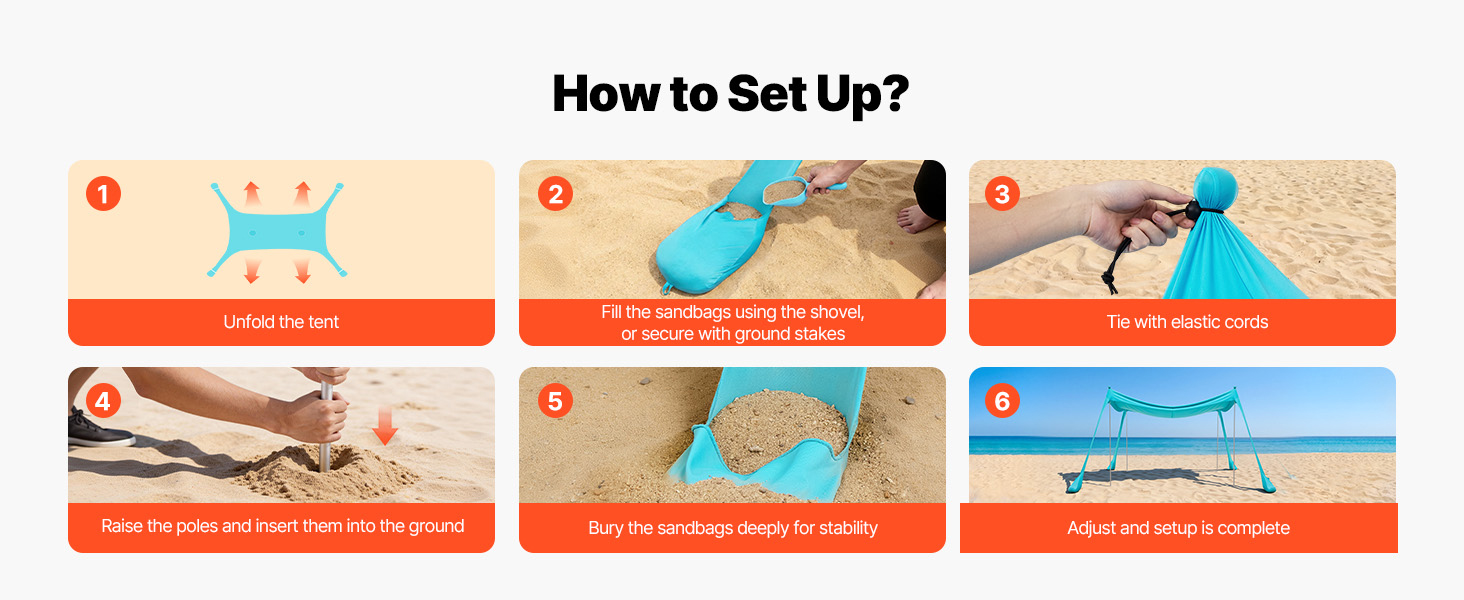 Stačí naplniť vrecia pieskom na mieste a zakopať ich, aby ste zvýšili ich hmotnosť. Tento inteligentný kotviaci systém s nízkou náročnosťou vytvára silnú, stabilnú základňu, ktorá pevne zafixuje plážový slnečník na mieste a zabezpečí spoľahlivú ochranu.