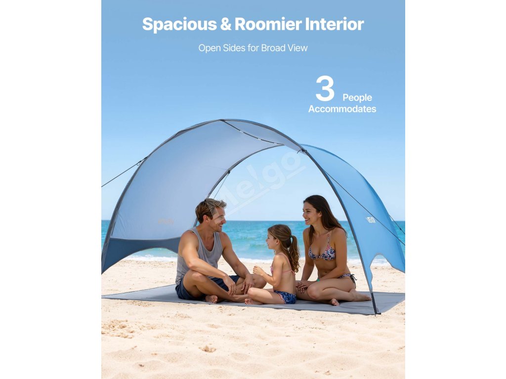 Náš prenosný plážový stan poskytuje dostatočný tieň, ktorý chráni vás a vašu rodinu pred ostrým priamym slnkom a zaručuje pohodlný a relaxačný deň.