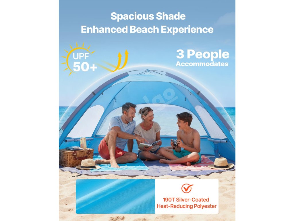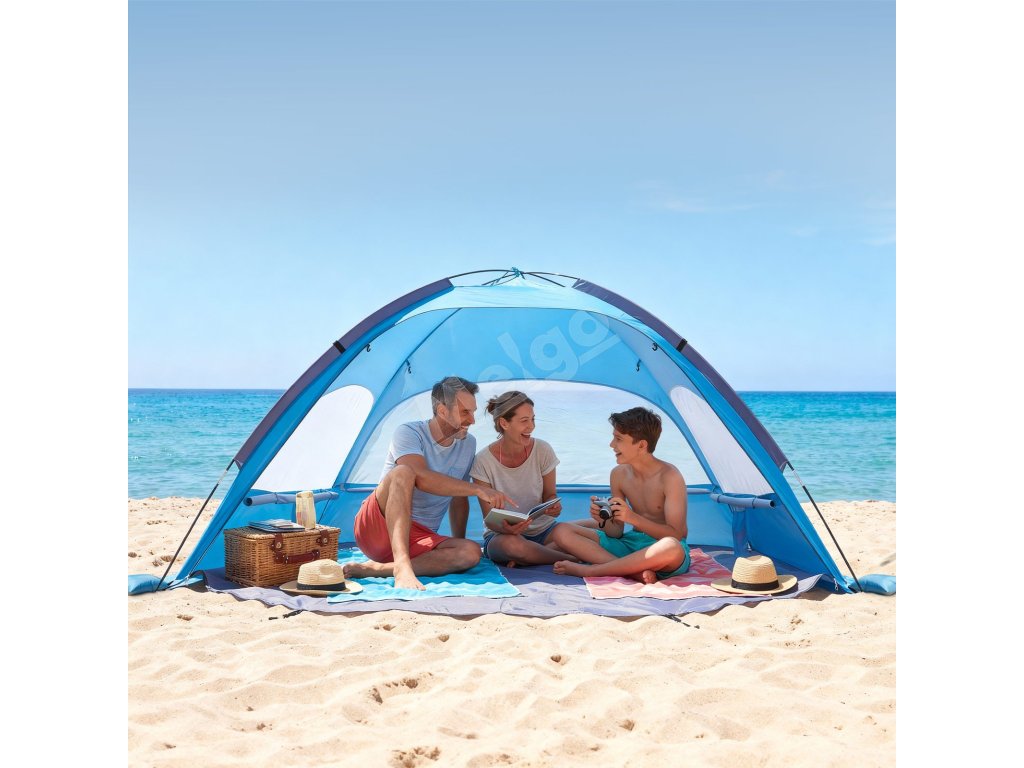Plážový stan pre 3 osoby upf 50+, ľahký, s taškou a vreckami na piesok