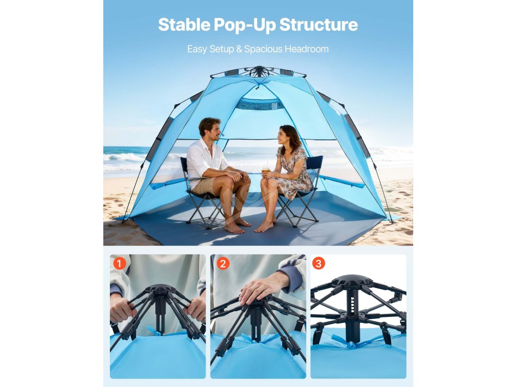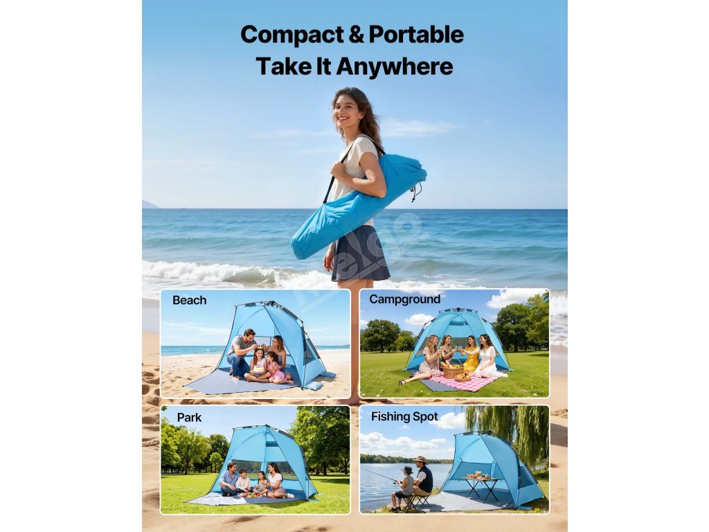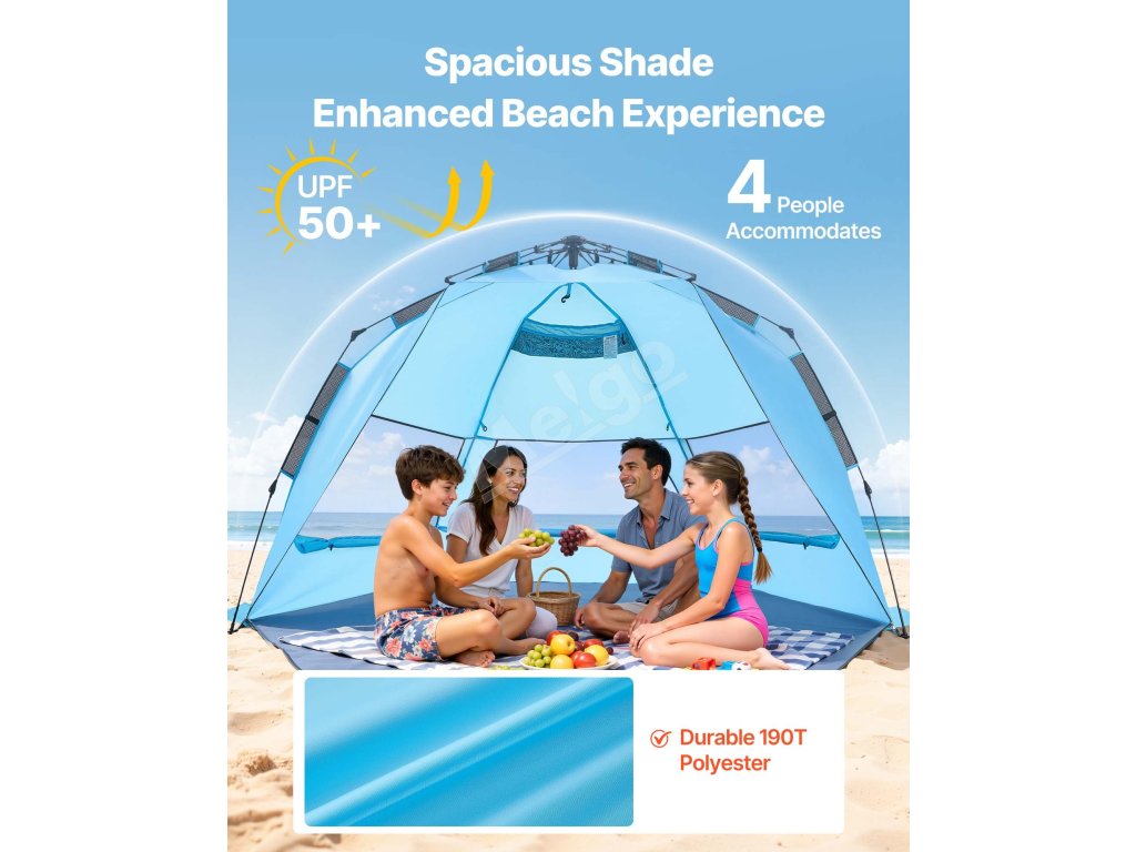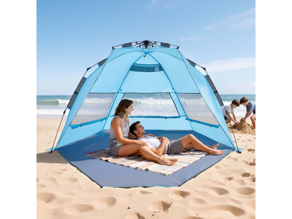 Plážový pop-up stan pre 4 osoby, UPF 50+, s taškou a vreckami