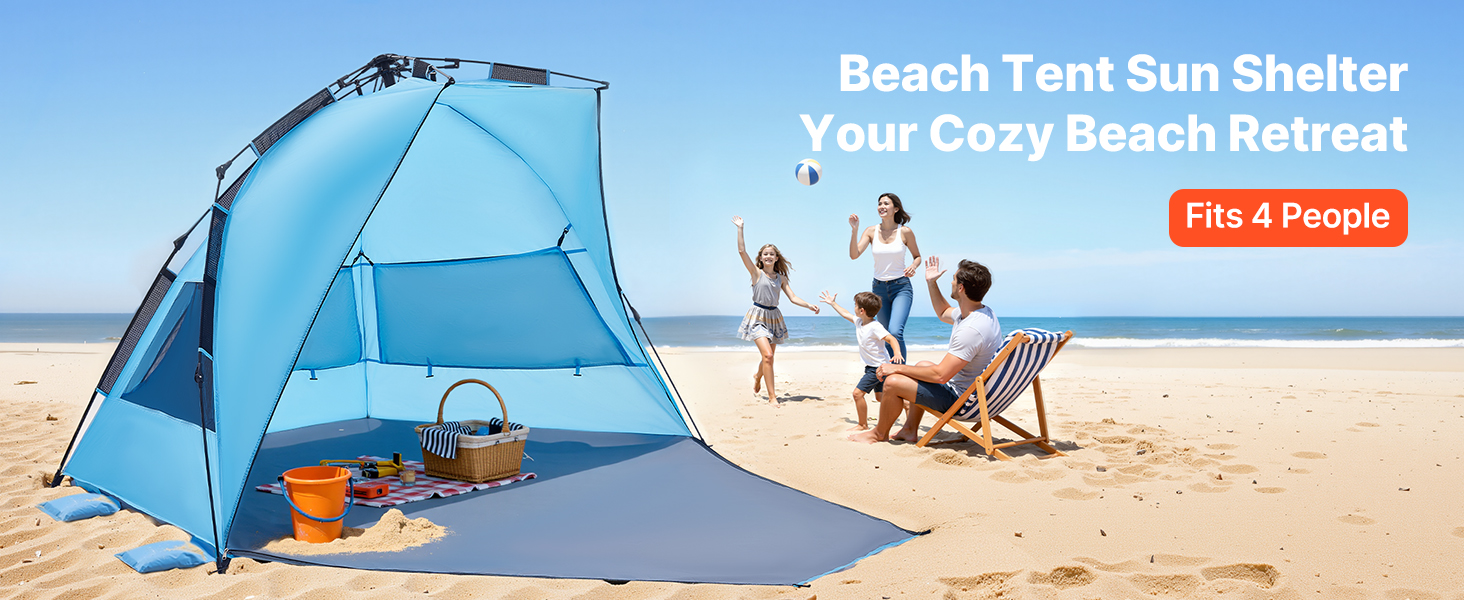 Náš prenosný plážový stan poskytuje dostatočný tieň, ktorý chráni vás a vašu rodinu pred ostrým priamym slnkom a zaručuje pohodlný a relaxačný deň.