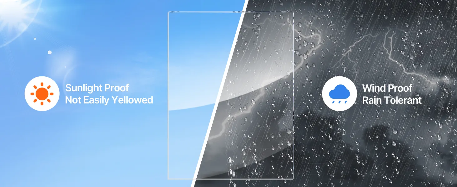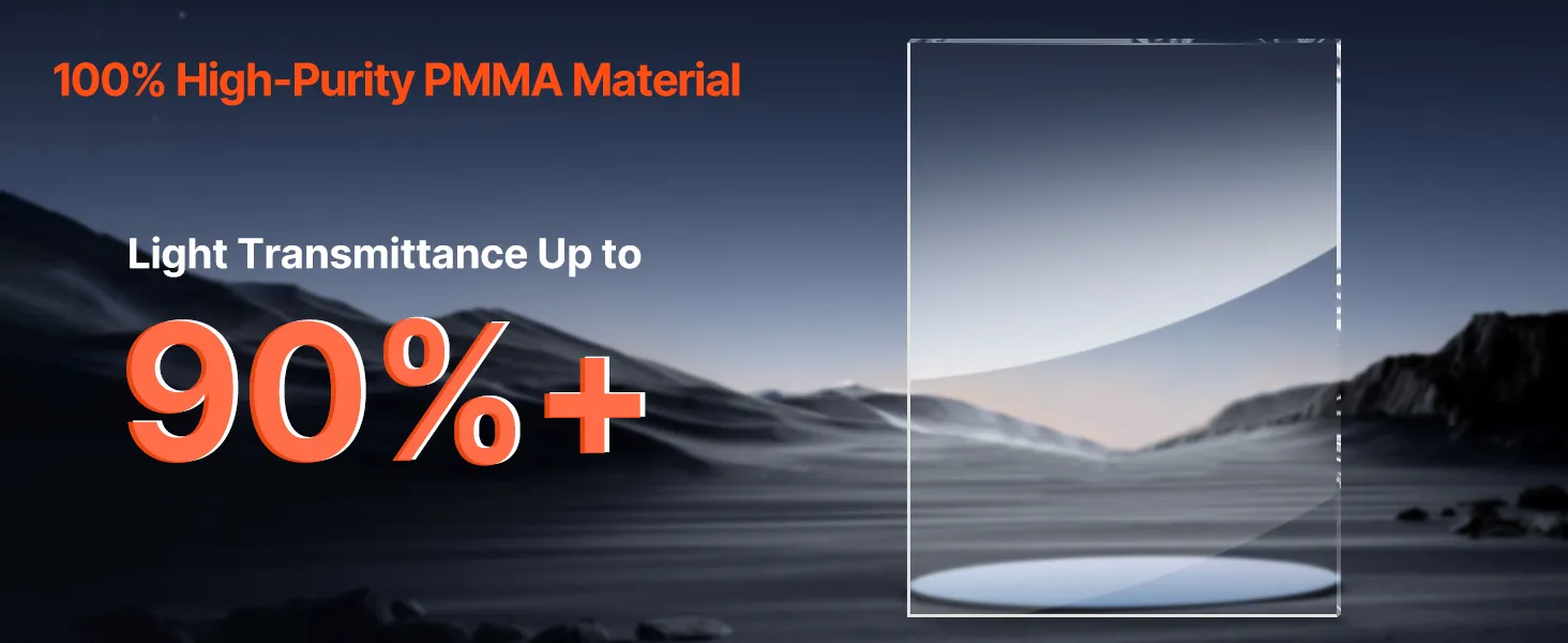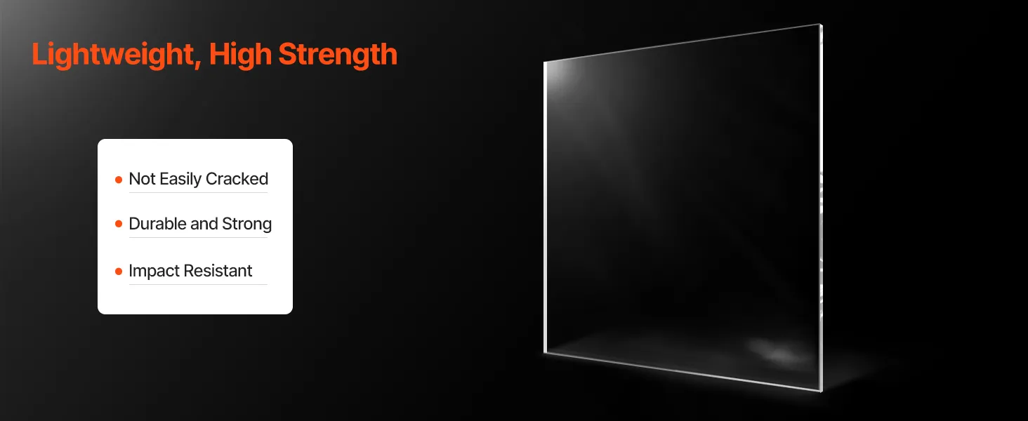 Tieto plastové panely sa môžu pochváliť vysokou pevnosťou a odolnosťou voči nárazom, vďaka čomu sa ťažko rozbijú. Obe strany sú vybavené ochrannými fóliami, ktoré sa musia pred použitím odstrániť, čo zaručuje vynikajúcu priehľadnosť s vysokým rozlíšením.