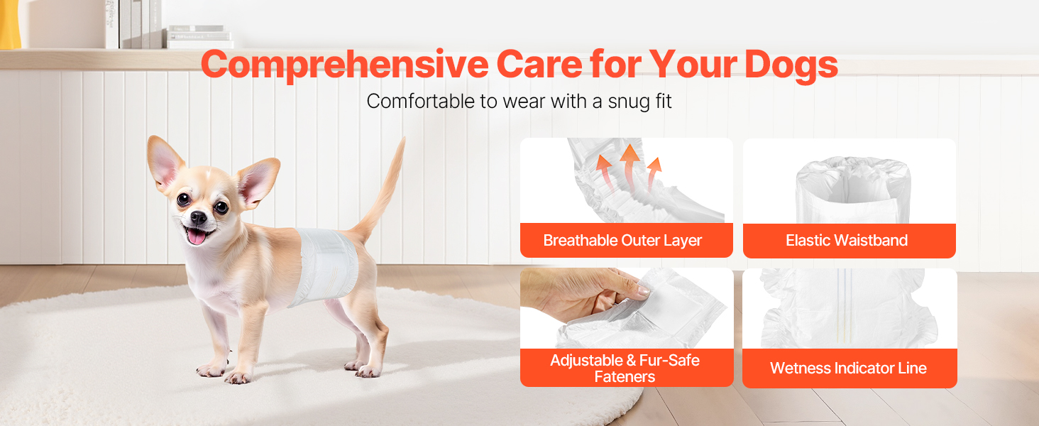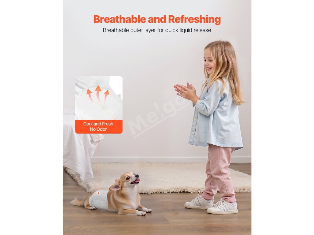 Ideálne na rôzne situácie, ako je zotavenie po chorobe, starostlivosť po operácii, inkontinencia seniorov, cykly horúčav, cestovanie a tréning na nočník. Tieto superabsorpčné plienky pre psov uľahčujú každodennú starostlivosť o domáceho miláčika, ľahko riešia problémy s nočníkom vášho psa a vám prinášajú pokoj.