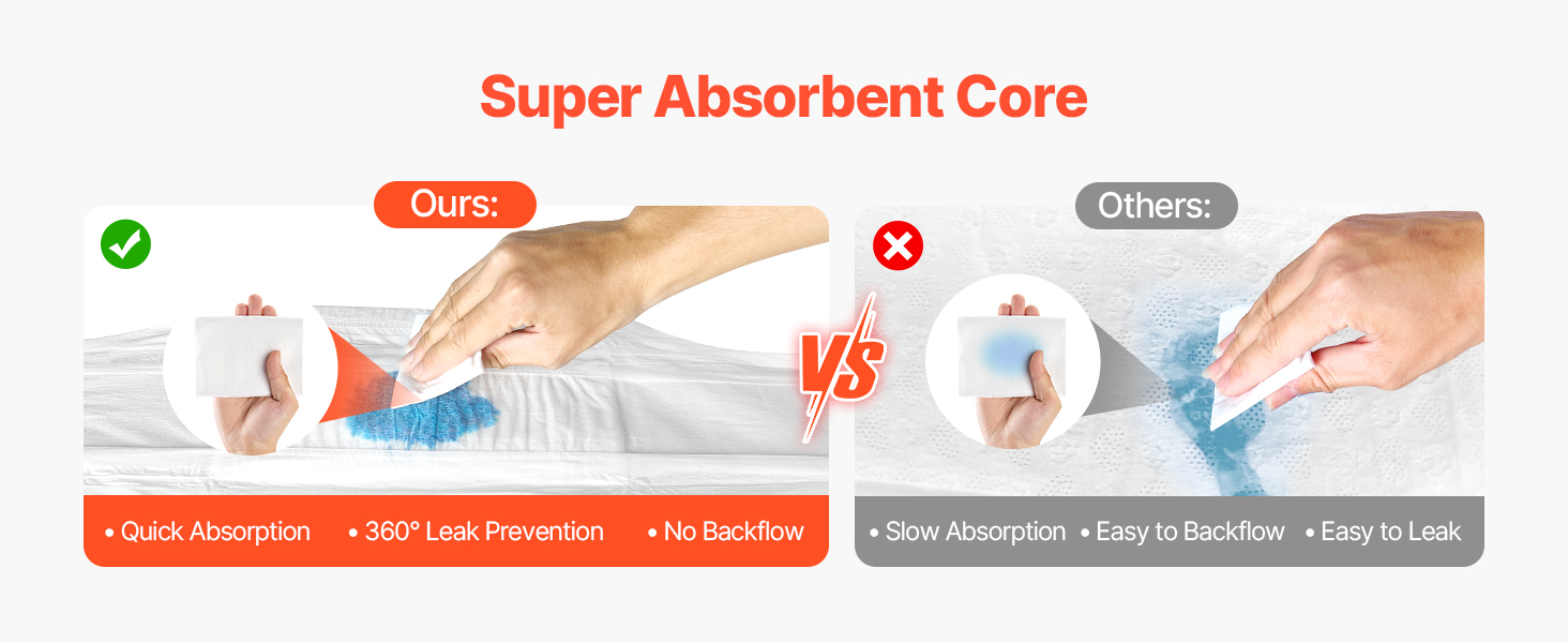 Vďaka superabsorpčnému jadru tieto jednorazové plienky pre psov rýchlo uzamknú tekutinu bez bočného úniku. Pomáhajú udržiavať vášho domáceho miláčika a domácnosť v suchu, čistote a bez zápachu, čím zabezpečujú pohodlné prostredie pre vášho domáceho miláčika aj váš priestor.