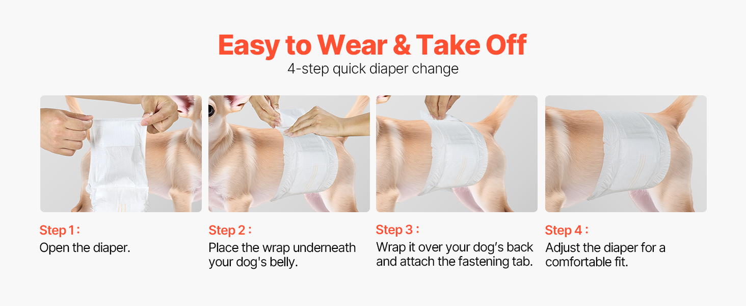 Tieto brušné plienky pre psíkov možno vymeniť len v 4 jednoduchých krokoch. Či už ste zaneprázdnený majiteľ domáceho maznáčika, alebo ho vychovávate prvýkrát, výmena plienok pre vášho psa bude rýchla a bezproblémová, vďaka čomu bude starostlivosť o domáceho maznáčika bezproblémová.