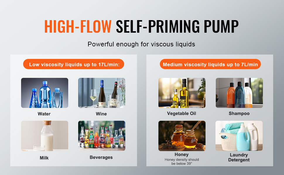 Tento plniaci stroj na fľaše, vybavený špičkovým membránovým čerpadlom, poskytuje rýchly prietok a výkonné odsávanie. Poradí si s kvapalinami s nízkou až strednou viskozitou s maximálnym odsávaním 2 m. Poznámka: Hustejšie kvapaliny znamenajú nižšiu rýchlosť.