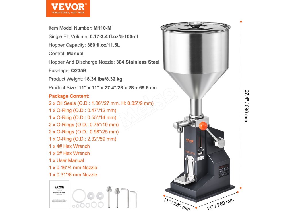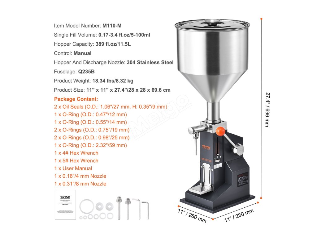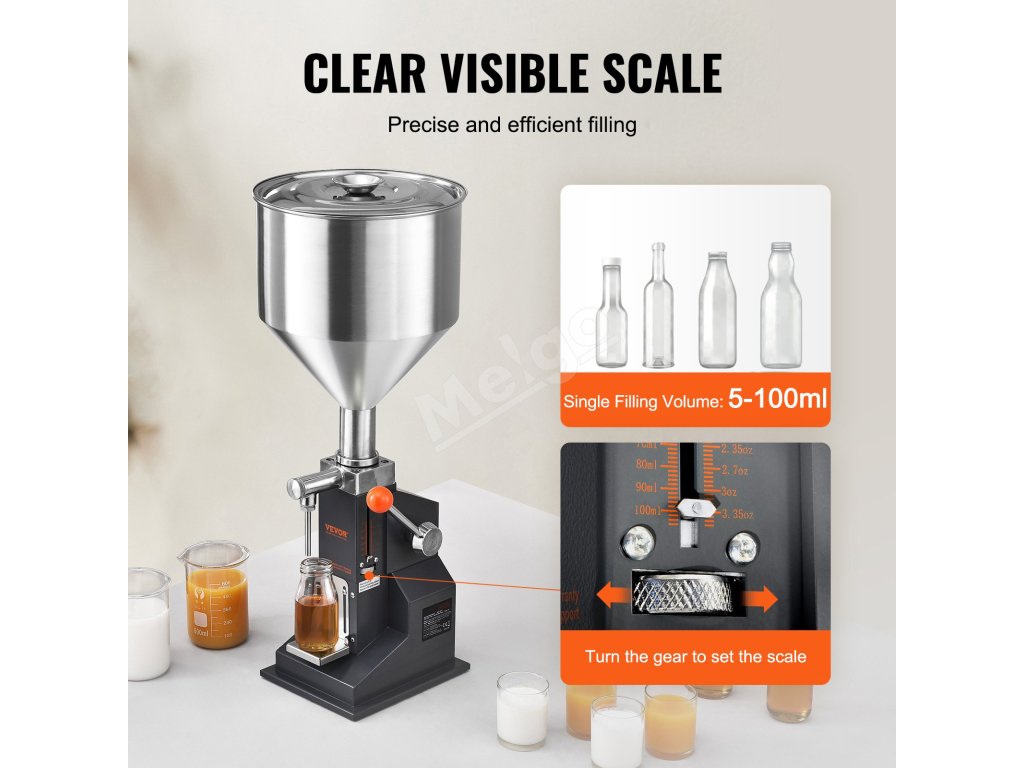Manuálna plnička tekutín pre fľaše 5–100 ml, nastaviteľná, nerez