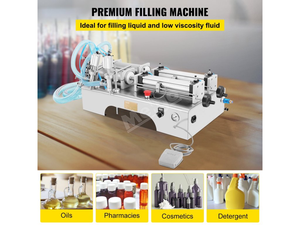 Naše plnivo sa vo veľkej miere používa v potravinárskej a nápojovej, kozmetickej, osobnej starostlivosti, poľnohospodárskej, farmaceutickej a chemickej oblasti. Ideálne zariadenie na plnenie tekutín a kvapalín s nízkou viskozitou. Zariadenie by malo na prácu pripojiť vzduchový kompresor.