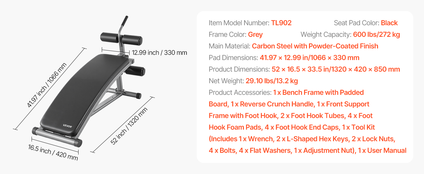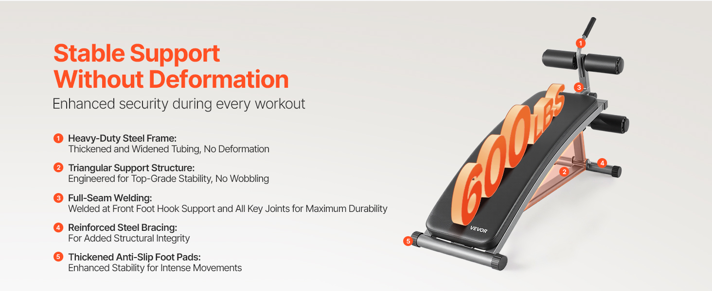 Táto lavička na cvičenie v sede má nastaviteľnú výšku a oporu pre nohy, je vyrobená z trojuholníkového rámu z odolnej ocele pre veľkú stabilitu. Praktická rukoväť na opačné krčenie pomáha pri tréningu brušných svalov. Ľahko sa zostavuje a je ideálnou voľbou pre začiatočníkov aj skúsených fitnes nadšencov.