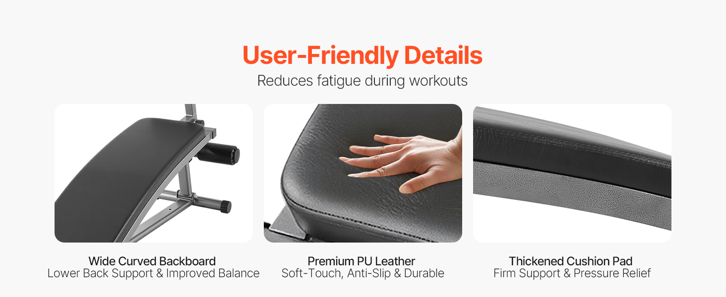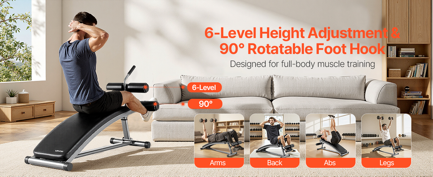 Vďaka viacerým nastaveniam výšky a nastaviteľnej dĺžke háku na nohy sa táto lavička na sedenie prispôsobí používateľom všetkých veľkostí pre rôzne úrovne intenzity. Zameriava sa na viaceré svalové skupiny na precvičenie celého tela, čo z nej robí všestranné a praktické fitnes zariadenie do každej domácej posilňovne.