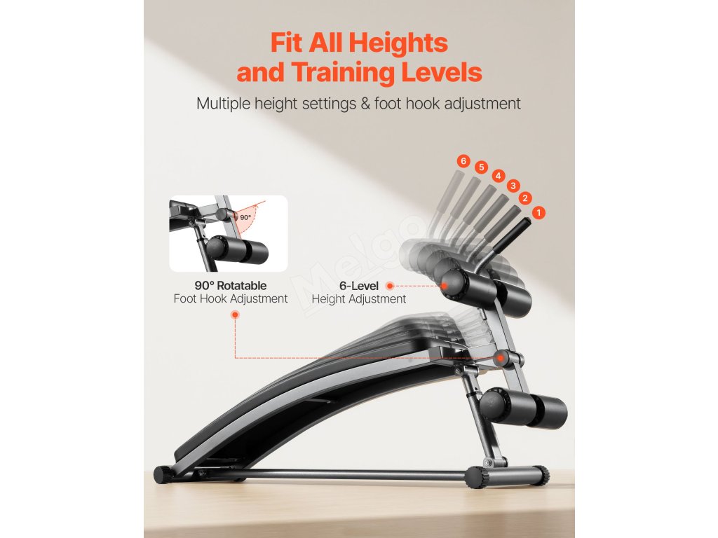 Vďaka viacerým nastaveniam výšky a nastaviteľnej dĺžke háku na nohy sa táto lavička na sedenie prispôsobí používateľom všetkých veľkostí pre rôzne úrovne intenzity. Zameriava sa na viaceré svalové skupiny na precvičenie celého tela, čo z nej robí všestranné a praktické fitnes zariadenie do každej domácej posilňovne.