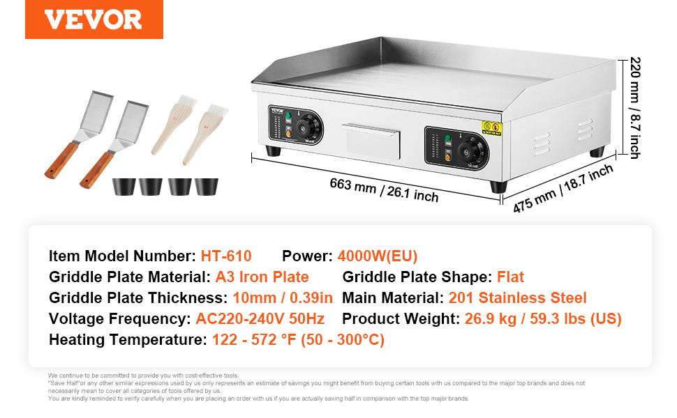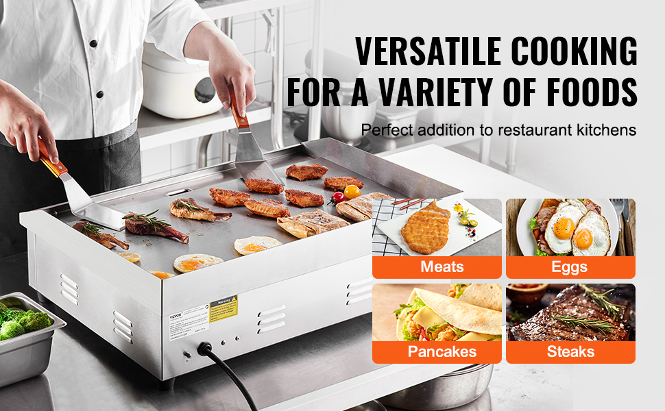 Plochý elektrický gril je ideálny na prípravu mäsa, vajec, palaciniek, steakov a ďalších pokrmov. Je vhodná do domácich aj komerčných kuchýň.