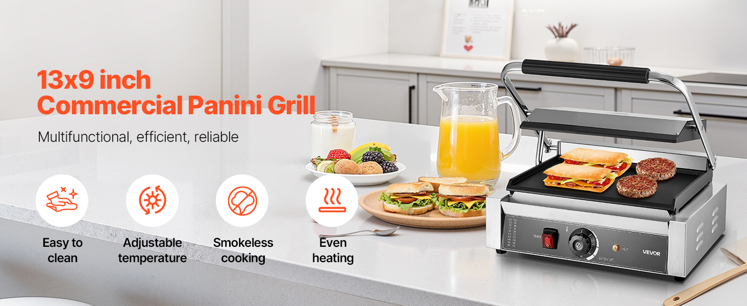 Náš komerčný panini gril dokáže pripraviť viacero potravín, takže je multifunkčný a spĺňa potreby rodinných stretnutí, stánkov s občerstvením, reštaurácií a ďalších zariadení. Ponúka všestranné varenie, pričom jeho kompaktná veľkosť grilu poskytuje dostatočnú plochu na varenie bez toho, aby zaberal veľa miesta na pulte.