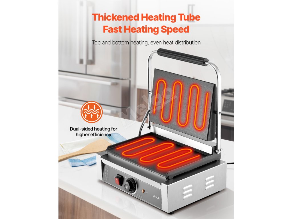 Náš komerčný panini gril dokáže pripraviť viacero potravín, takže je multifunkčný a spĺňa potreby rodinných stretnutí, stánkov s občerstvením, reštaurácií a ďalších zariadení. Ponúka všestranné varenie, pričom jeho kompaktná veľkosť grilu poskytuje dostatočnú plochu na varenie bez toho, aby zaberal veľa miesta na pulte.