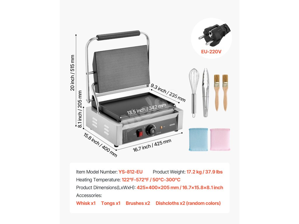 Elektrický panini gril 2200W, nerez, termostat, smalt. platňa 34×23 cm