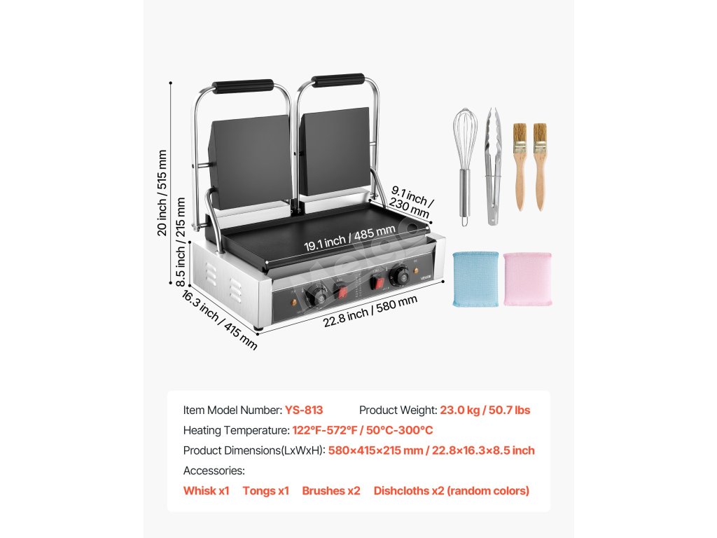 Komerčný sendvičový gril je vybavený vonkajším povrchom z nehrdzavejúcej ocele so žiaruvzdornou rukoväťou. Pre väčšiu bezpečnosť je vybavený protišmykovými nožičkami. Viaceré vetracie otvory na oboch stranách účinne odvádzajú teplo a pomáhajú udržiavať primeranú teplotu zariadenia.