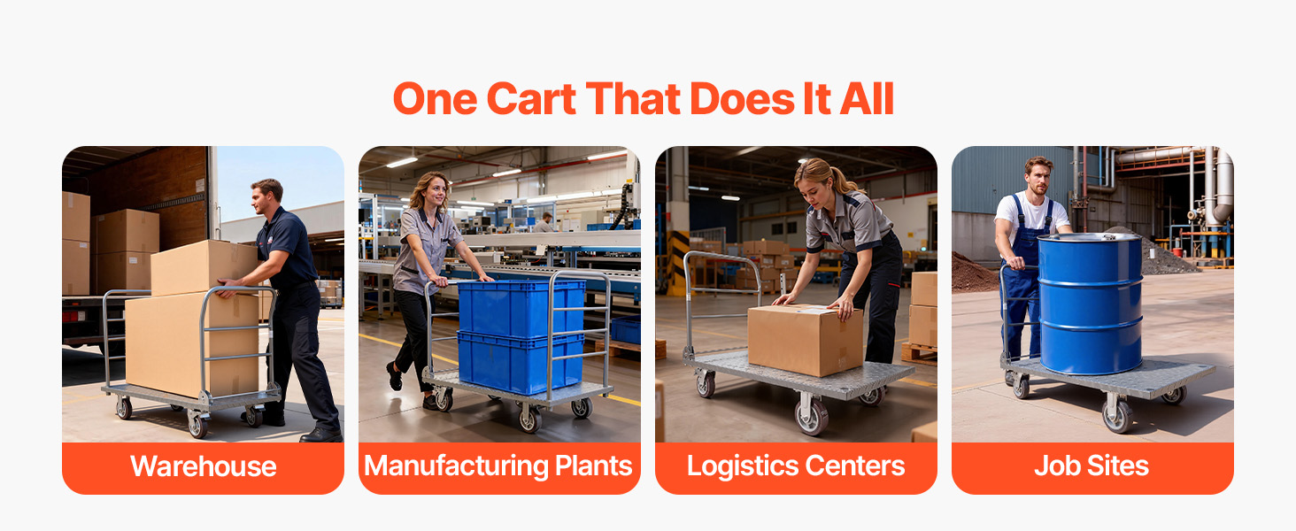 Od prepravy skladových zásob po nakladanie veľkých nákladov a priemyselnú prepravu materiálov, tento priemyselný ručný vozík zvládne všetko. Jeden vozík pokryje viac úloh s menšou námahou.