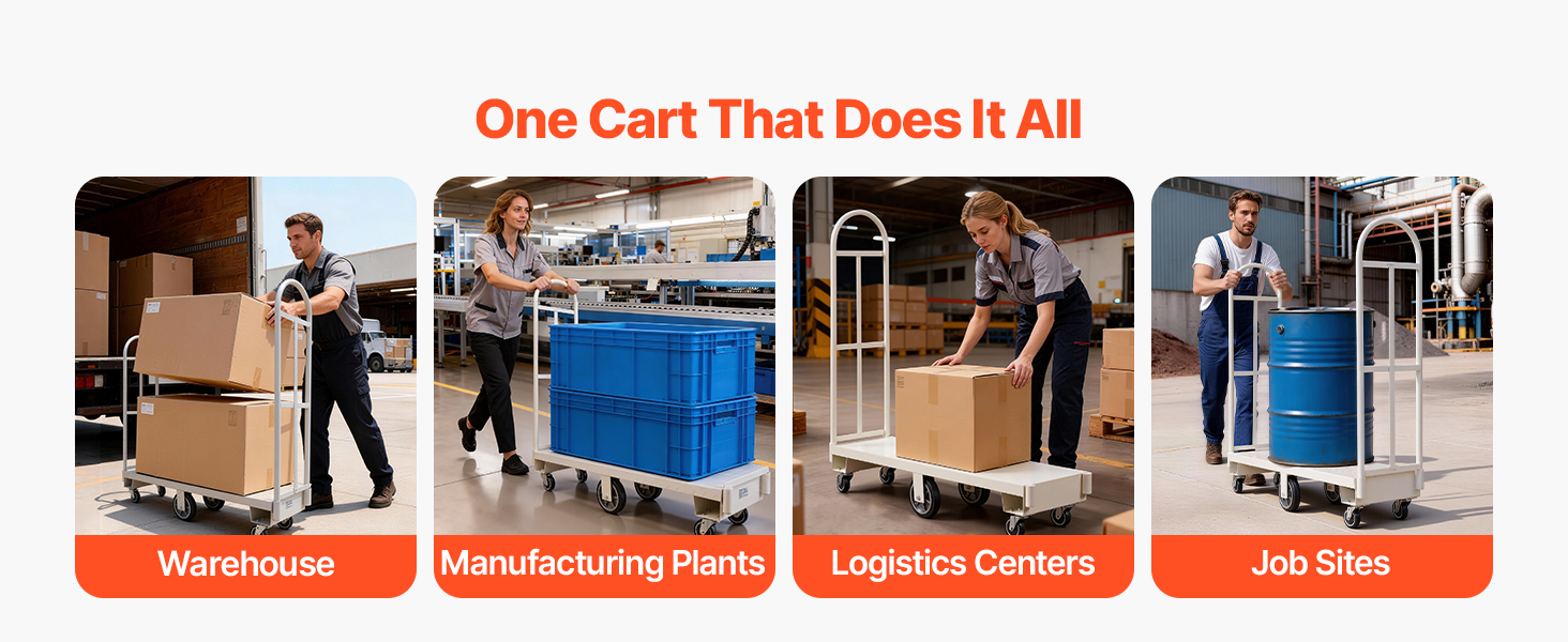 Od prepravy skladových zásob po nakladanie veľkých nákladov a priemyselnú prepravu materiálov, tento priemyselný ručný vozík zvládne všetko. Jeden vozík pokryje viac úloh s menšou námahou.