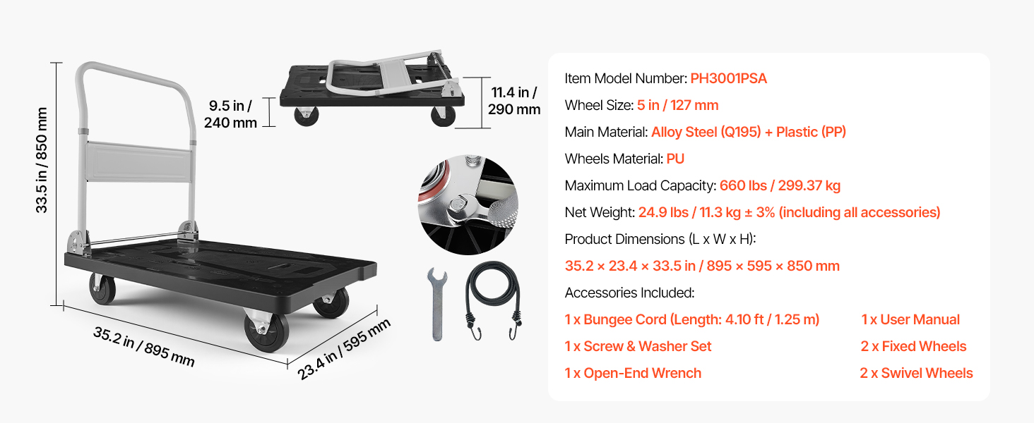 Rozlúčte sa s objemnými vozíkmi, ktoré zaberali veľa miesta. Tento skladacia plošinový vozík sa rýchlo zloží a vojde sa na balkón, do rohu obchodu alebo do kufra auta, čím šetrí miesto a zároveň je pripravený na použitie.