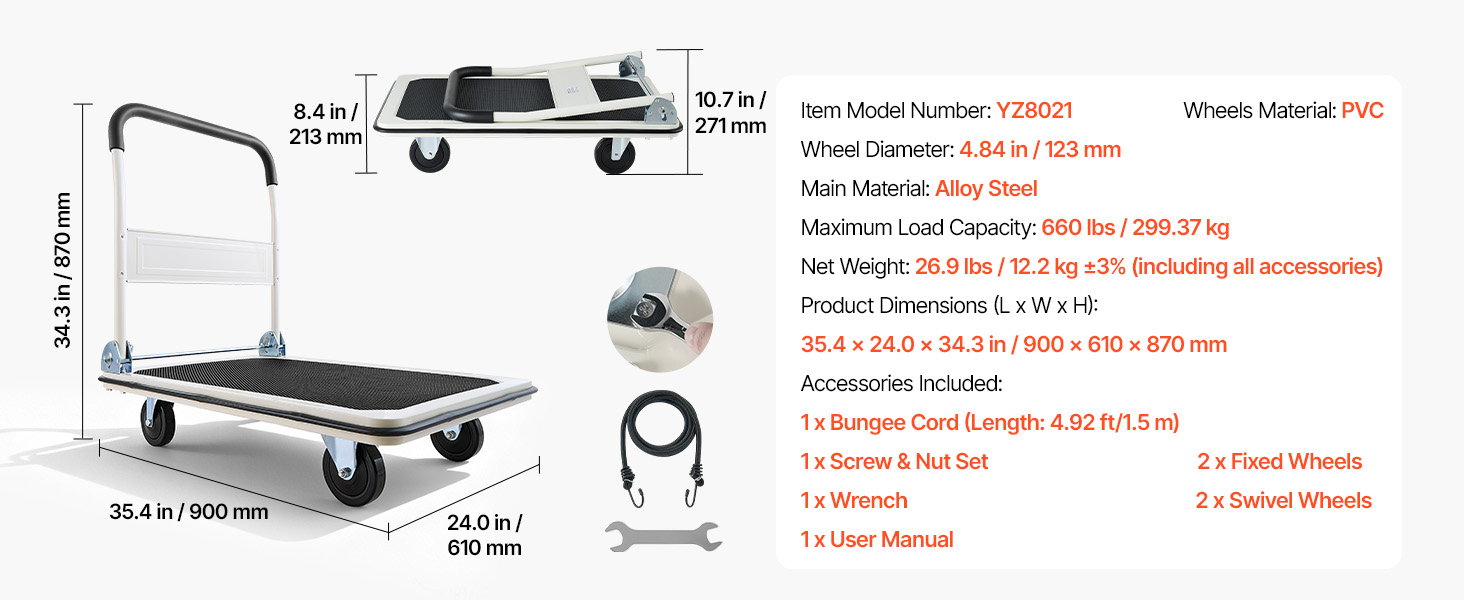 Rozlúčte sa s objemnými vozíkmi, ktoré zaberali veľa miesta. Tento pojazdný plošinový vozík sa rýchlo zloží a vojde sa na balkón, do rohu obchodu alebo do kufra auta, čím šetrí miesto a zároveň je pripravený na použitie.