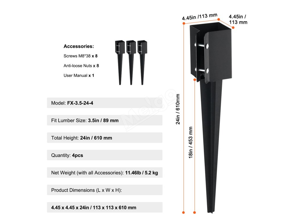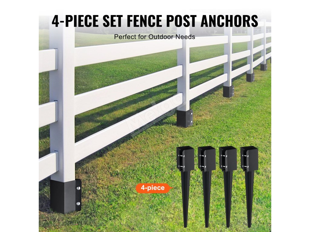 Kotva do zeme na stĺpiky 4 ks kovová čierna, 24×4×4" vnútorný 3.5×3.5"