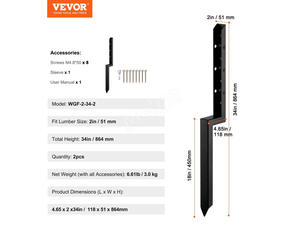 Kotva na stĺpik oplotenia, 2 ks, vnútorný priemer 2×2 inches, oceľ