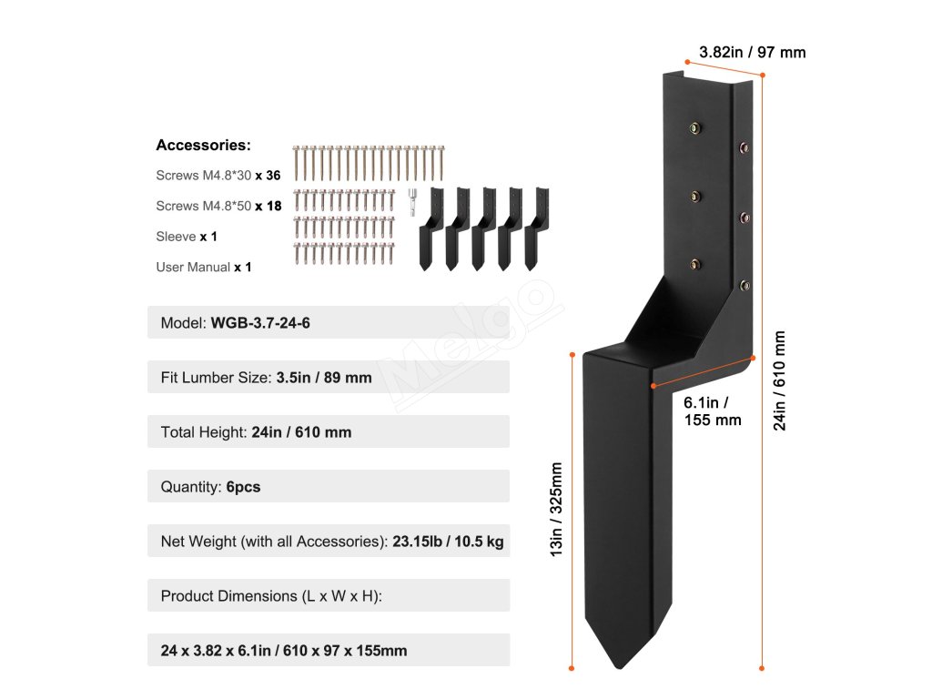 | Rozmery výrobku (d x š x v) | 23.54 x 3,82 x 6,1 palca / 598 x 97 x 155 mm |