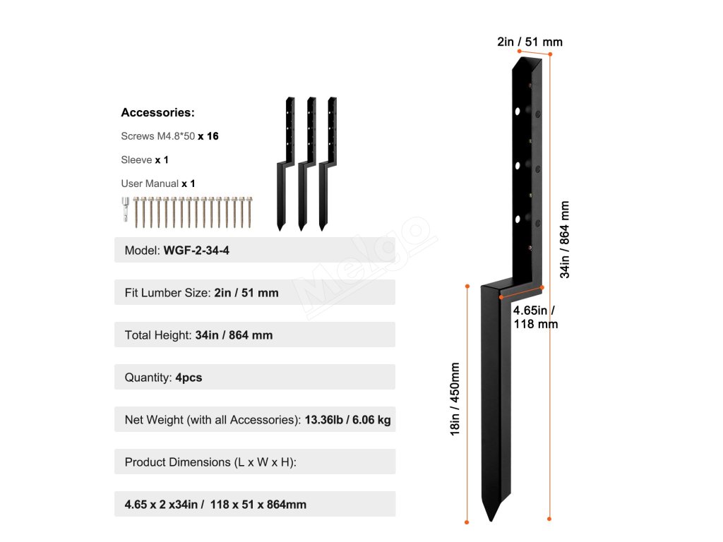 | Dĺžka klinca | 18in / 450mm ±10mm |