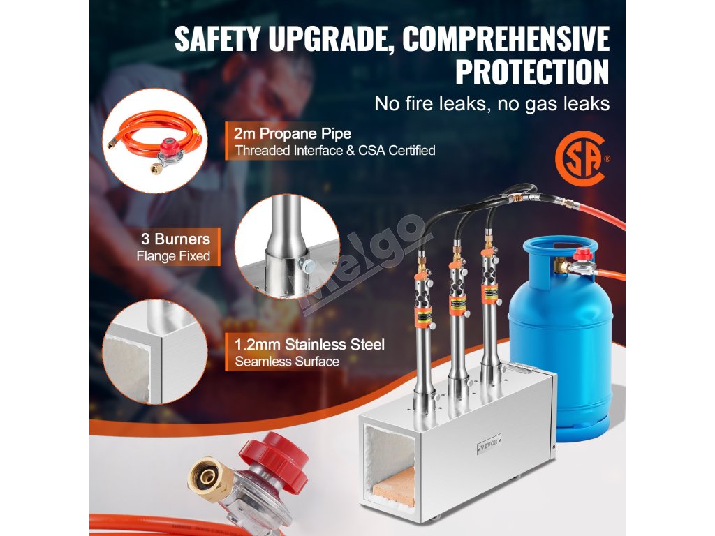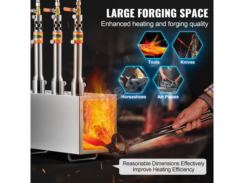 Propánová kovárska pec 3 horáky 2600℉ nerezová štvorcová komora