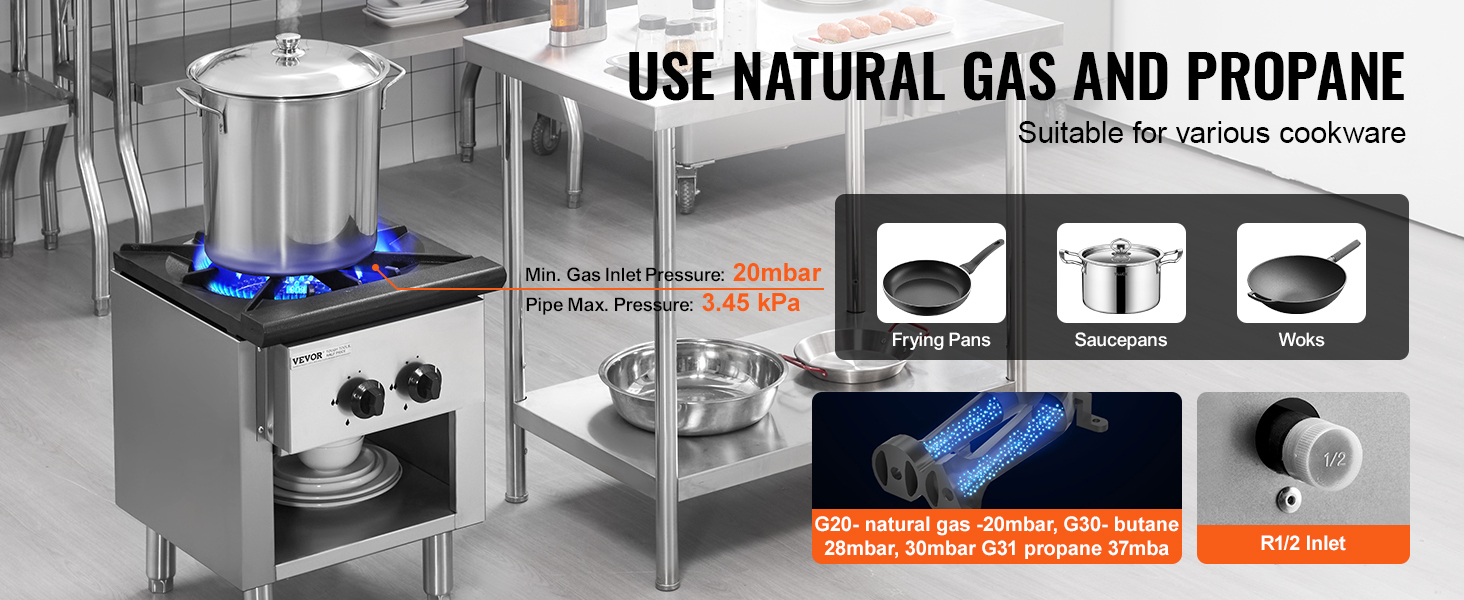 Pultový plynový sporák so skriňou, 26KW, propán a zemný plyn, nerez