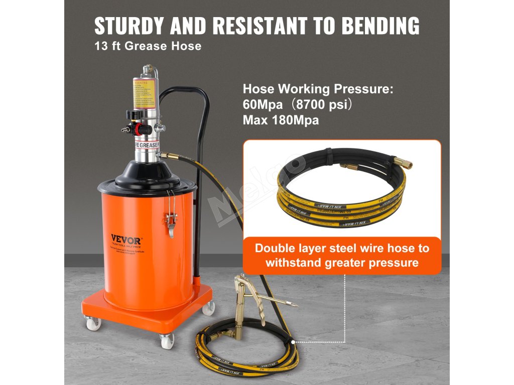 Vzduchom ovládaná mazacia pumpa 20 L, 13 ft hadica, 50:1 s kolieskami
