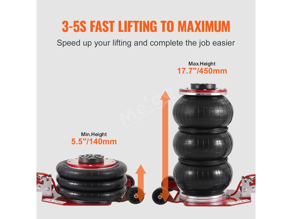 Pneumatický airbagový zdvihák 3000 kg, trojbalónový, 44.9 cm, 3-5 s