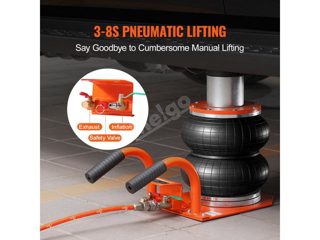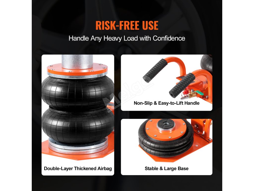Bez zdvíhania je výška vzduchového zdviháka len 4,5 palca. Je vybavený protišmykovými zdvíhacími rukoväťami, vďaka ktorým ho môžete lepšie umiestniť pod vozidlo, čo účinne rieši problém so zdvíhaním vozidiel s nízkym podvozkom.