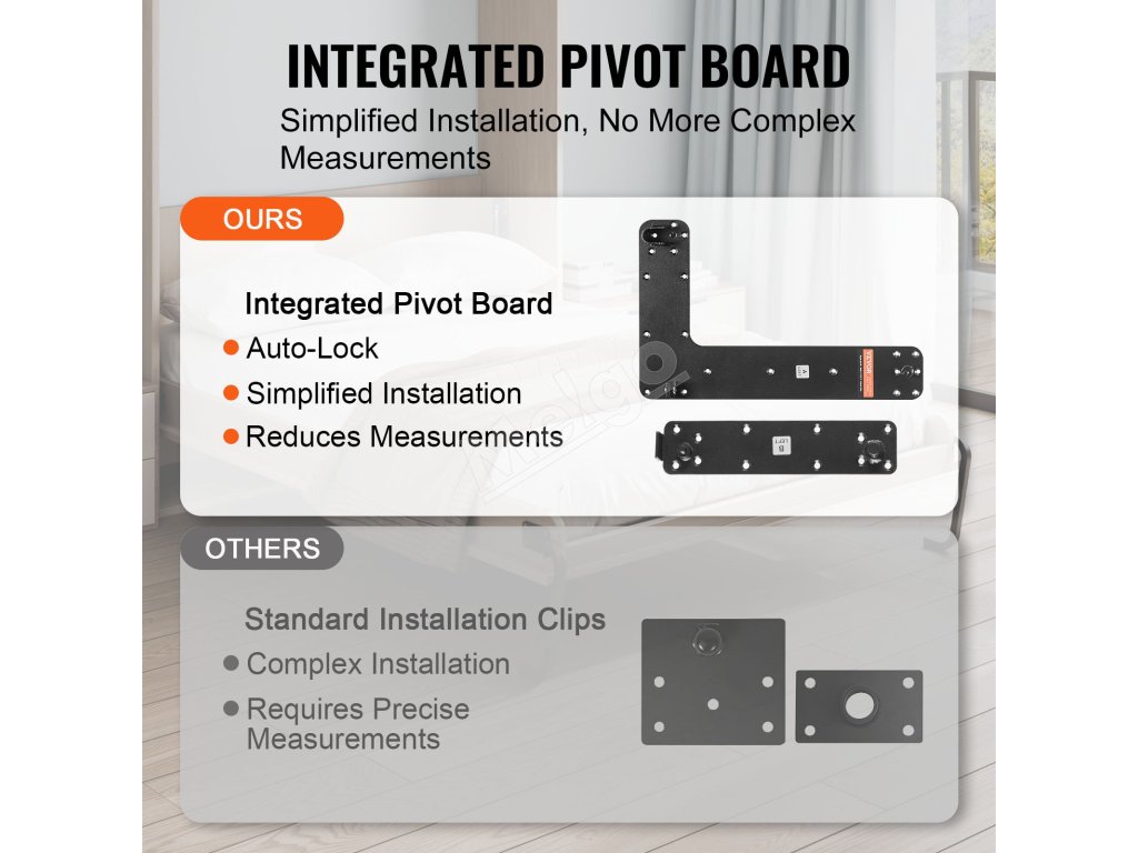Chcete si vytvoriť priestorovo úspornú Murphyho posteľ, ale máte problém s inštaláciou? Naša súprava príslušenstva k Murphyho posteli je určená pre domácich majstrov a obsahuje integrovanú otočnú dosku, ktorá zjednodušuje proces inštalácie a umožňuje vám ľahko vytvoriť vysnívané priestorové riešenie.